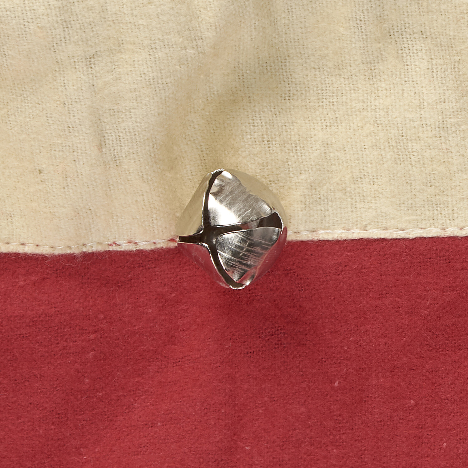 Santa sack features silver bell accents and contrasting cream border around the top.