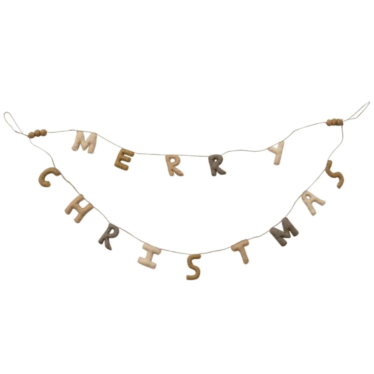 Garland | Merry Christmas Wool Felt Double Layer | Poms & Jute Cord | Neutral Multi Color