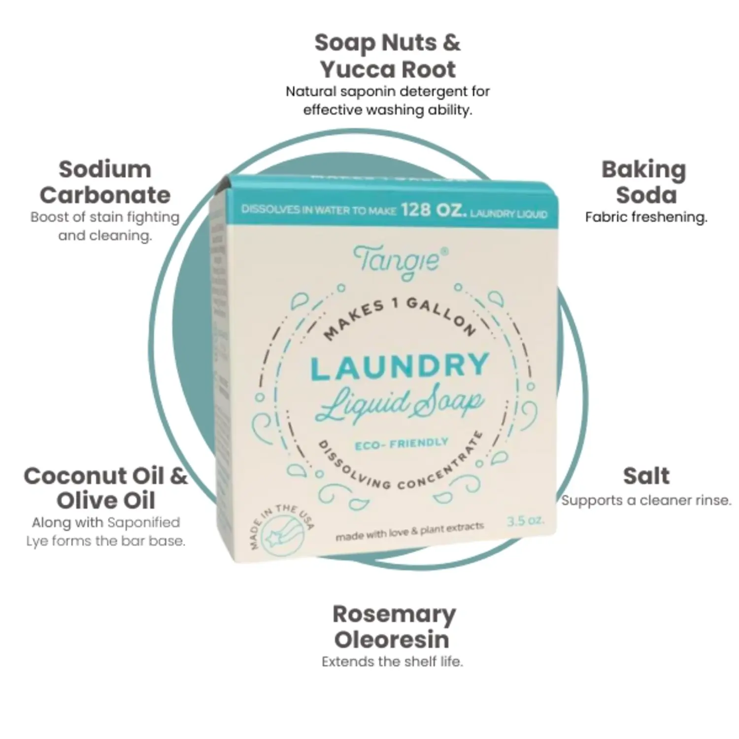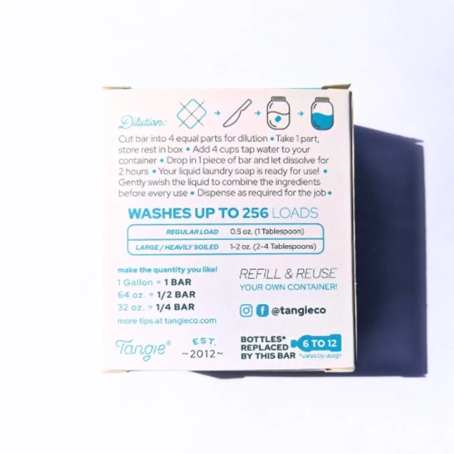 The #1 best-selling Tangie Laundry Concentrate Bar is a space-saving powerhouse that delivers high-performance cleaning without plastic, harsh chemicals, or waste.