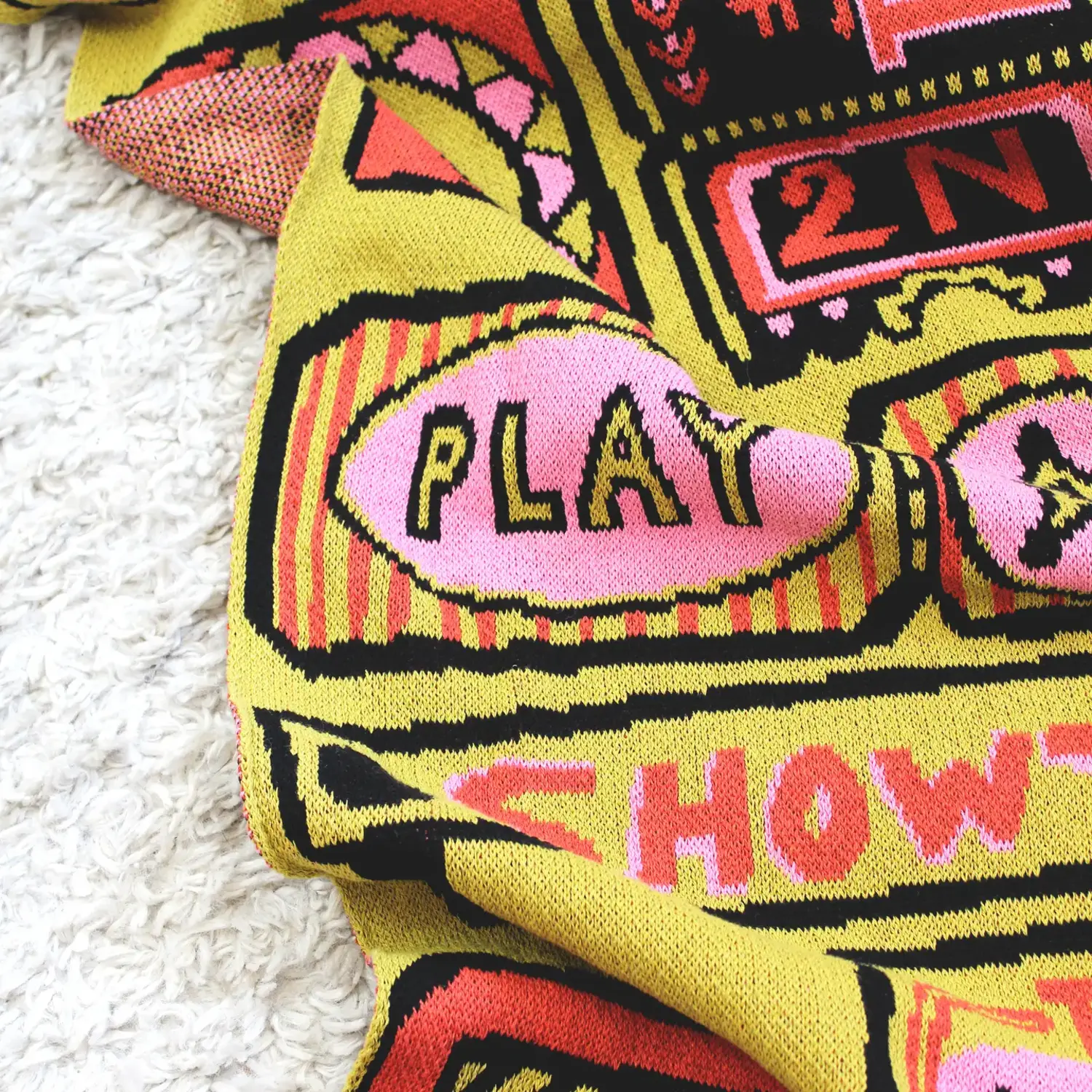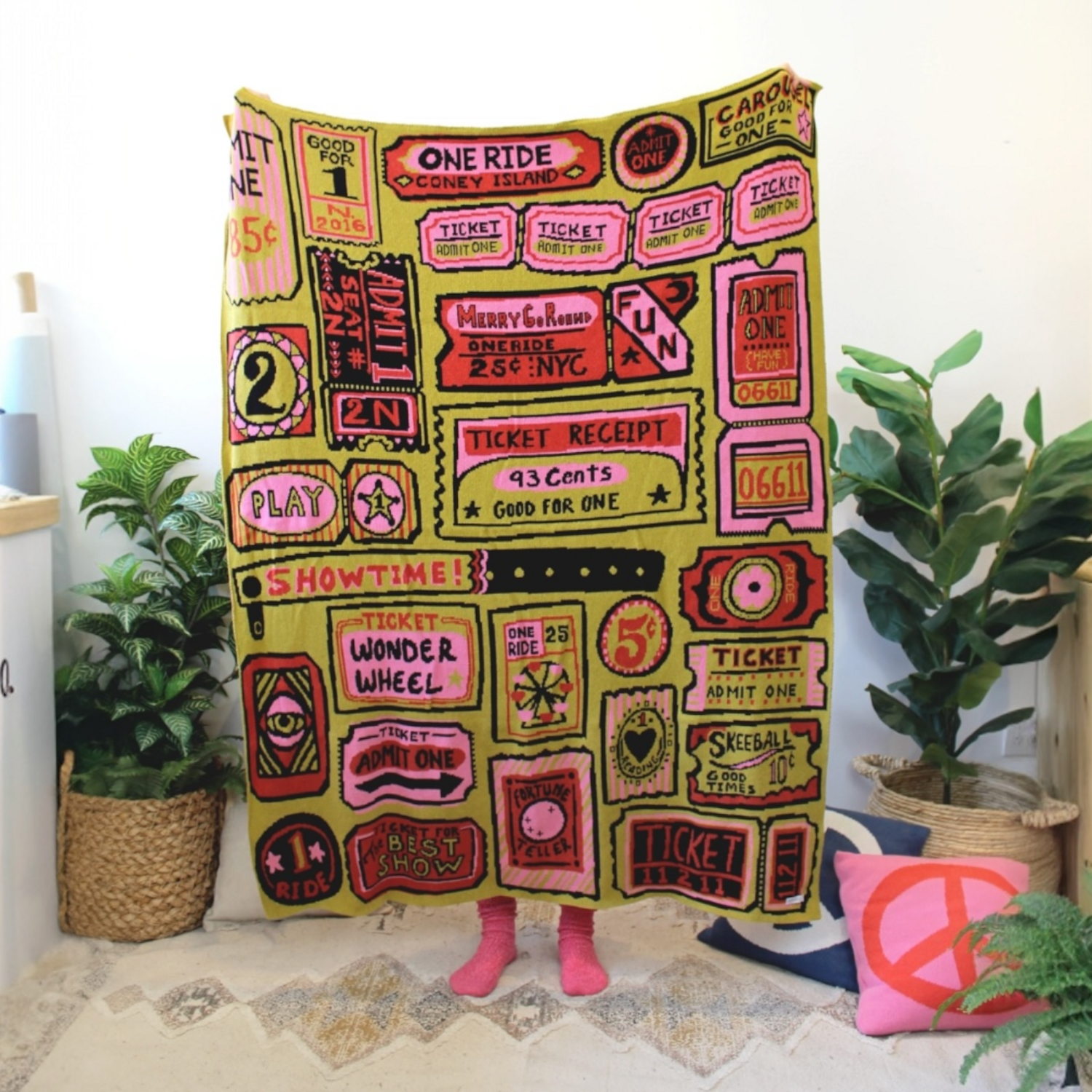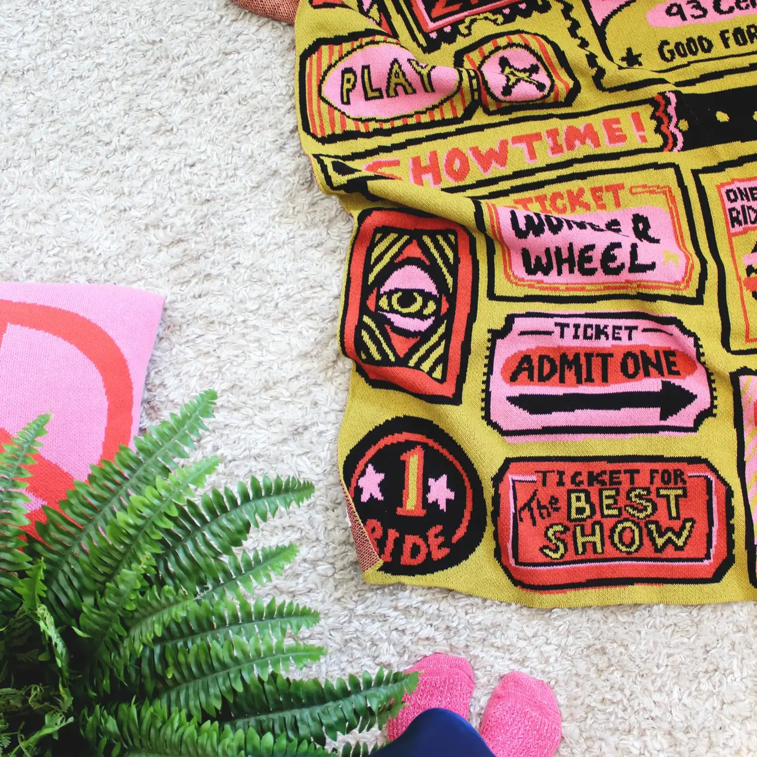 Blanket | Recycled Cotton/Acrylic | Admit One Tickets | Chartreuse/Pink/Red