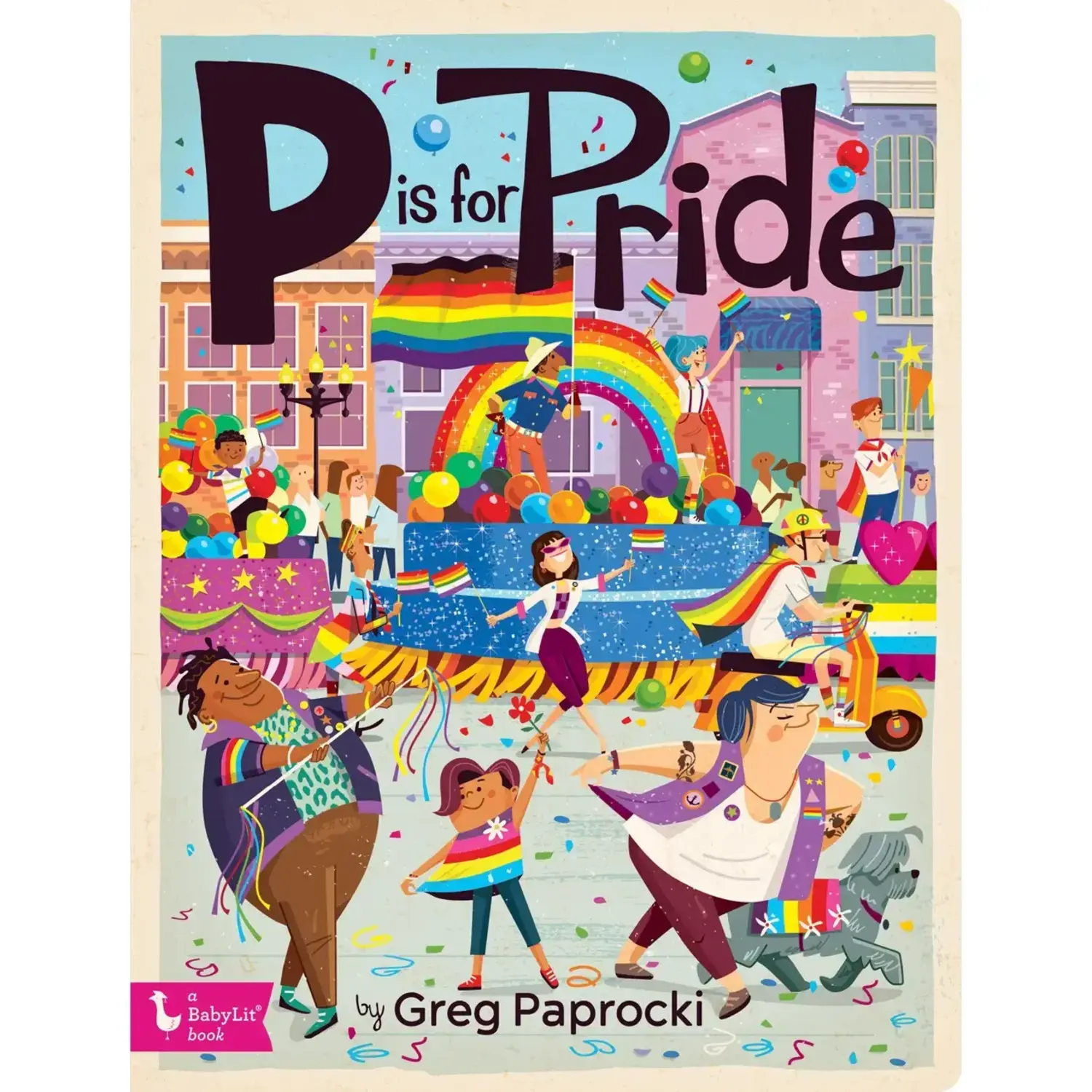 Greg Paprocki’s P is for Pride introduces toddlers to the alphabet by pairing each letter with a word associated with the LGBTQ+ community and supporters in an age-appropriate way.