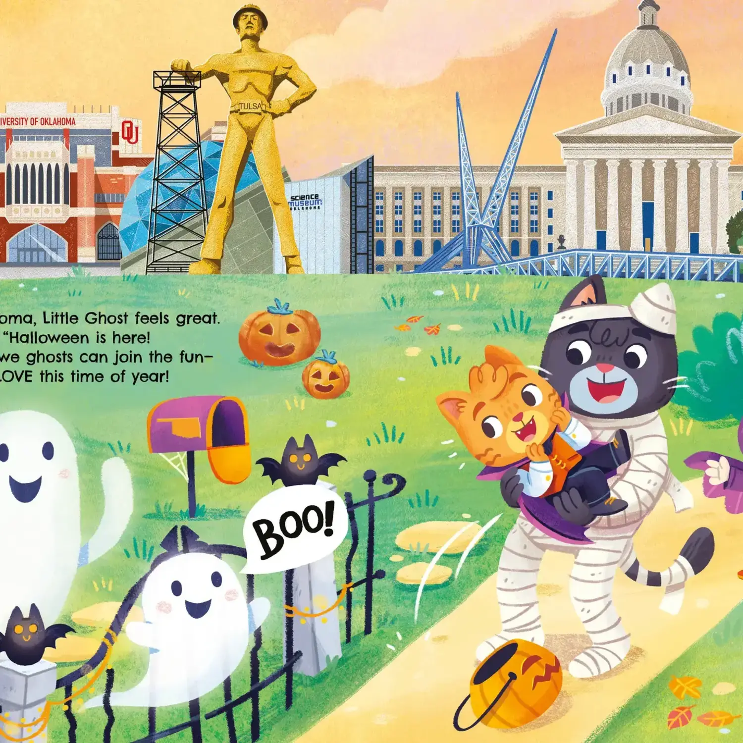 Experience a fa-BOO-lous Halloween with Little Ghost on a tour of all the landmarks you know and love in OKLAHOMA!