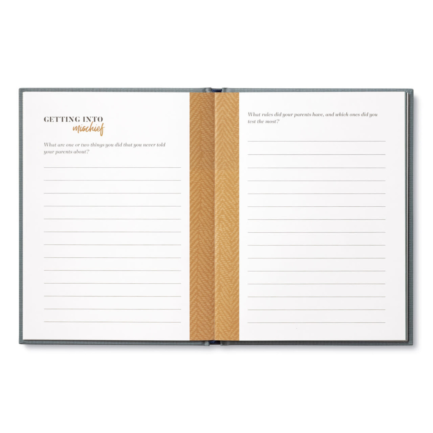 Use the book’s thoughtful prompts to capture stories that have shaped your father’s life, such as: