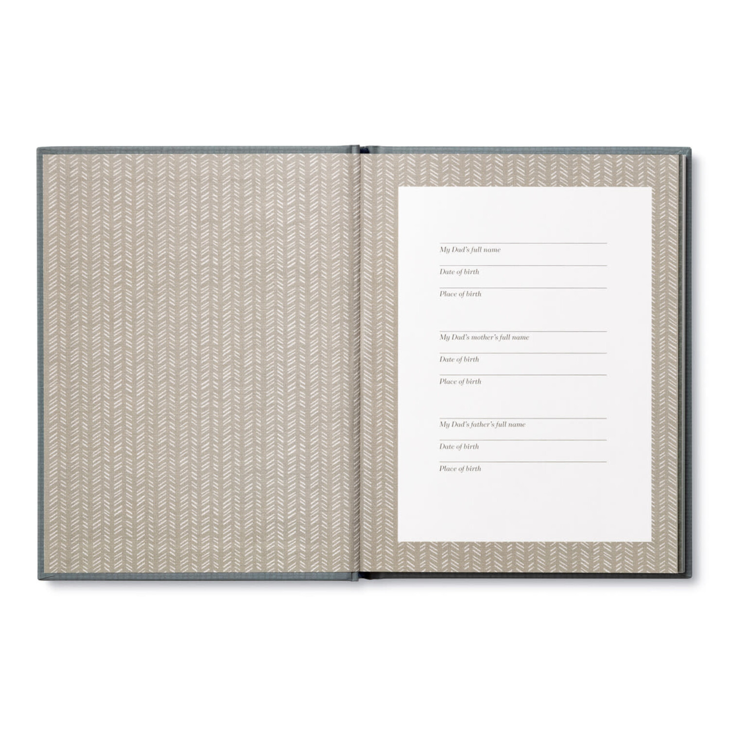 Inside are meaningful questions for Dad to answer—about his childhood, his family, his accomplishments, and his wishes.