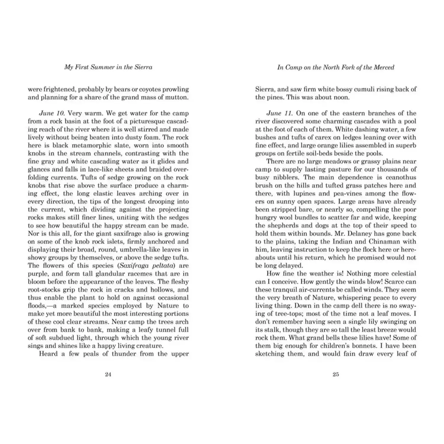 Muir’s heartfelt and often humorous descriptions of his first summer spent in the Sierra will captivate and inspire long-time fans and novice naturalists alike.