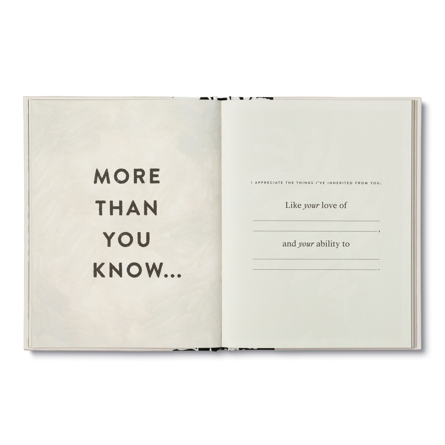 • Thoughtful prompts help you record qualities you admire, lessons you’ve learned, and special moments you want to remember