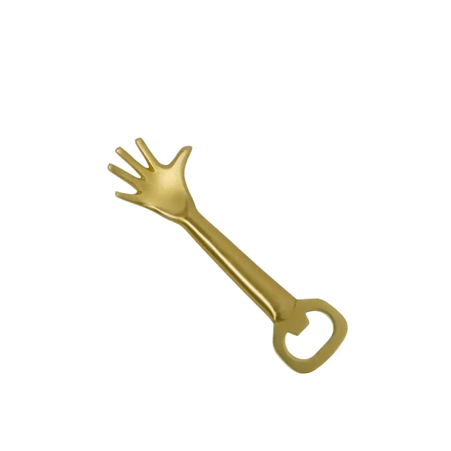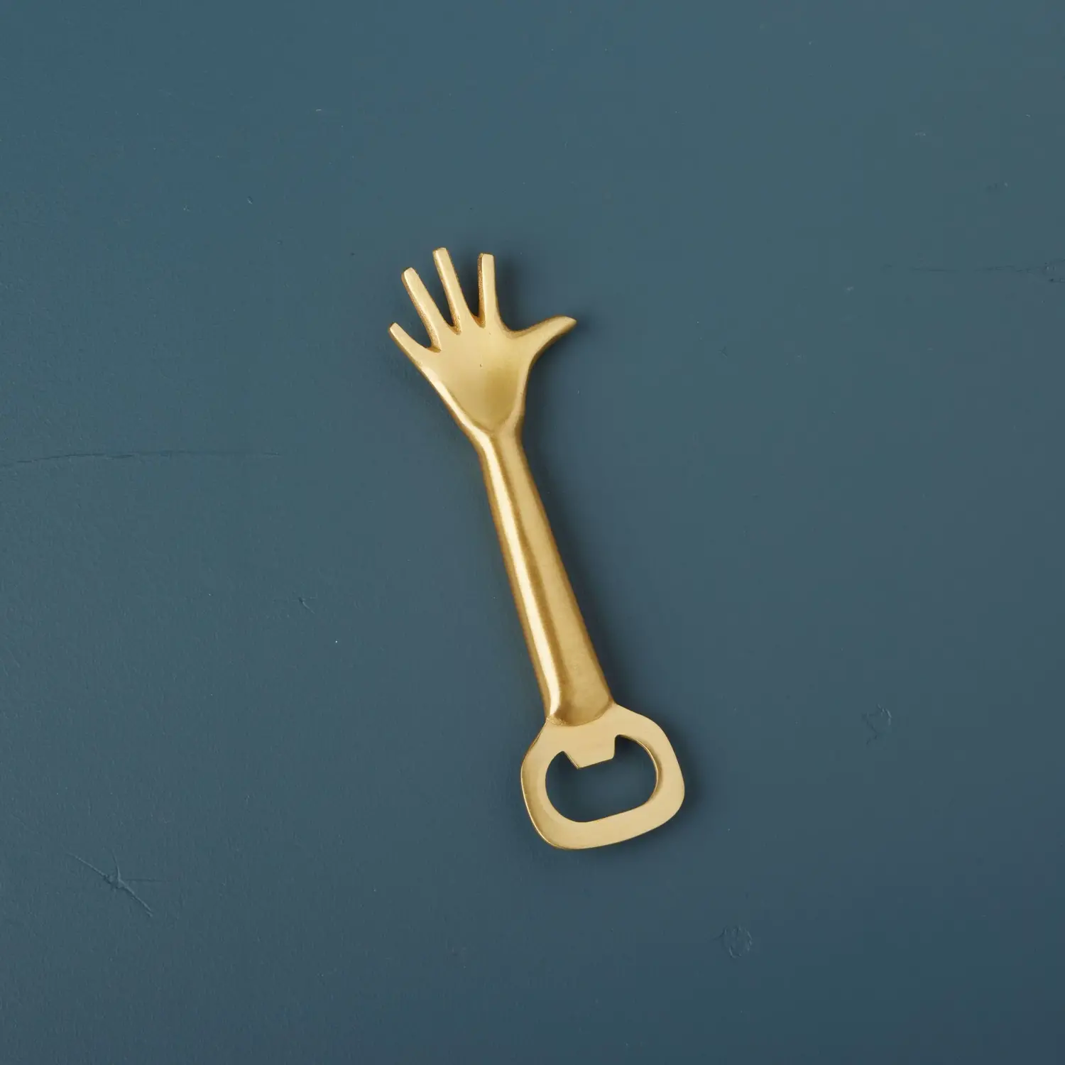 Raise a hand to happy hour. This playful bottle opener features an open-hand design, bringing a touch of humor and charm to your barware.