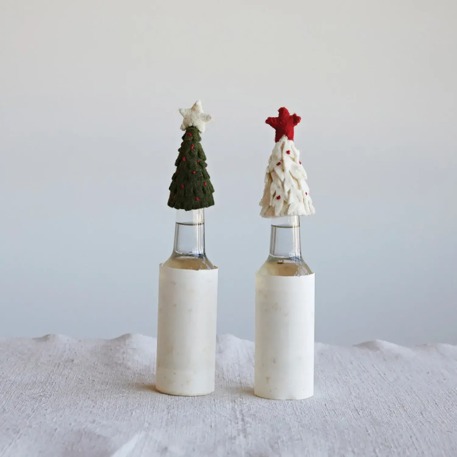 4"H Handmade Wool Felt Tree w/ Star Bottle Topper, 2 Colors.