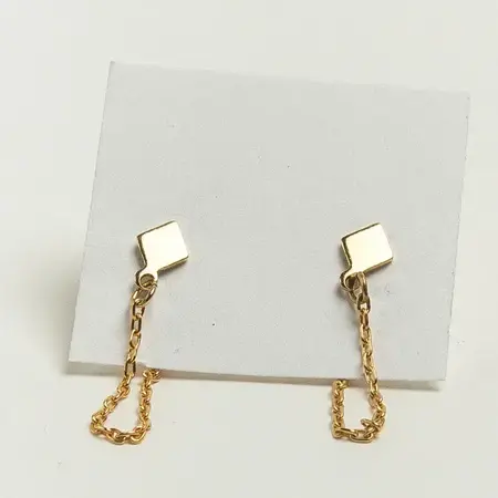 Earrings | Small Diamond & Chain Studs | 24KGP