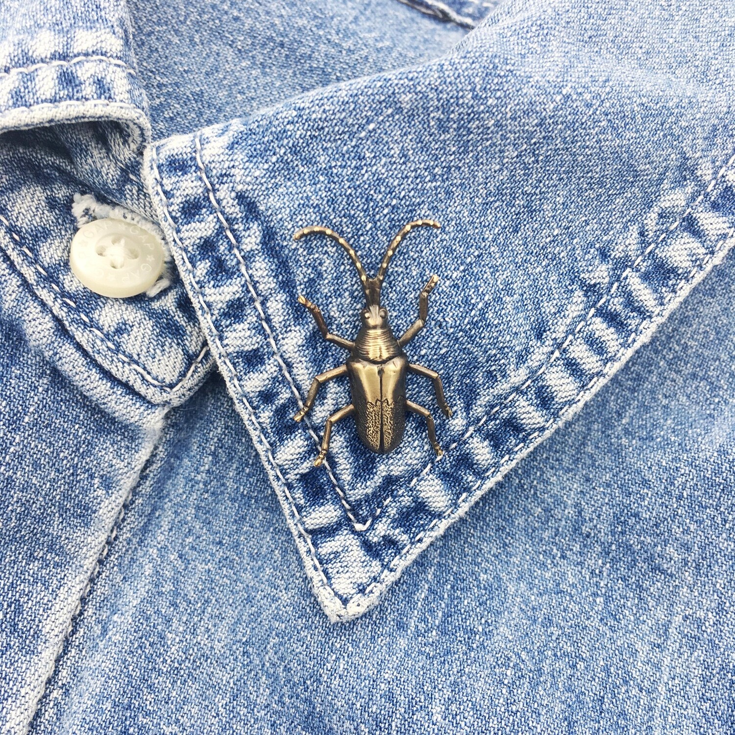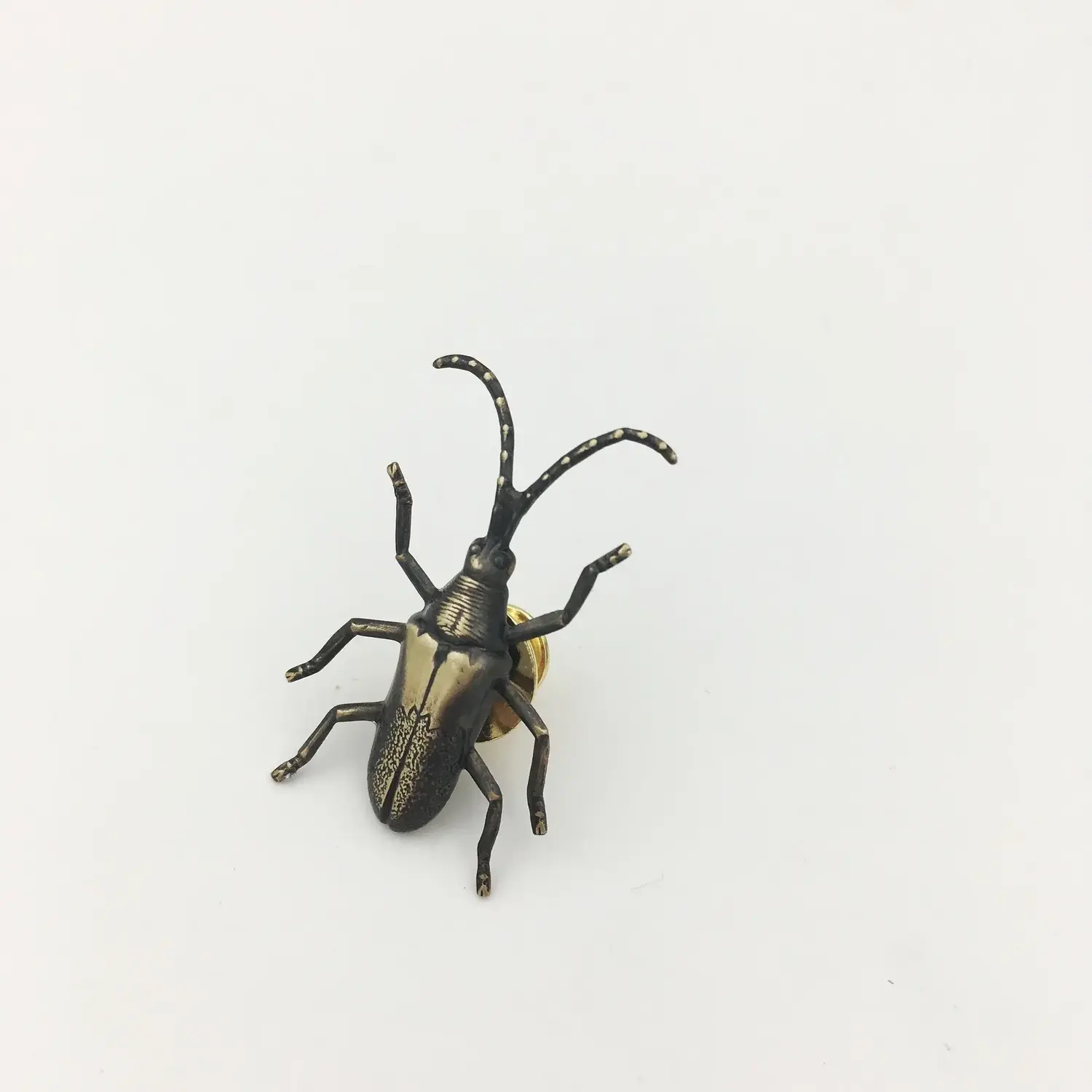 These long-horned beetle pins can be worn however you like: as an insect lapel pin or on a jacket or a bag.