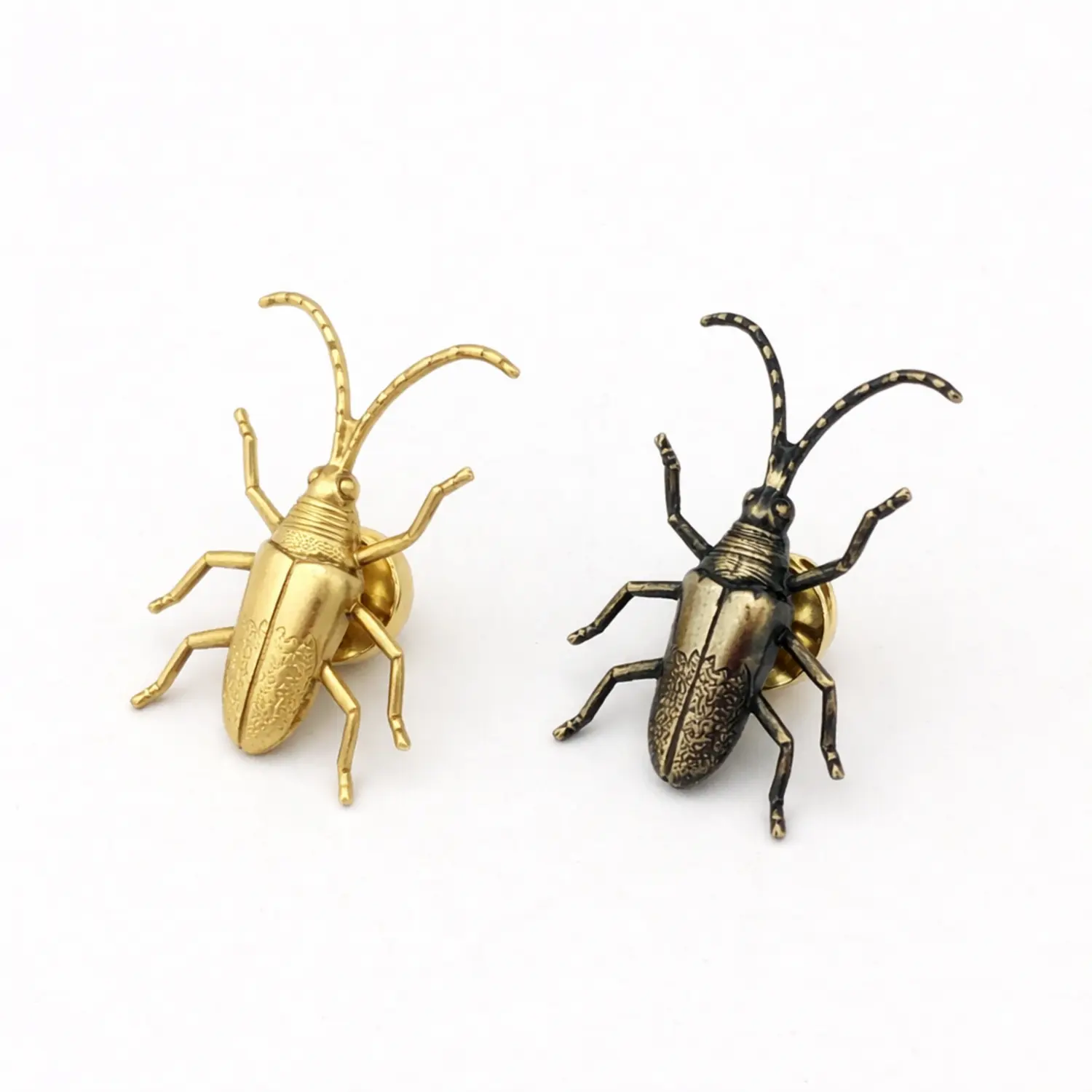 The highly-detailed beetles are brass stampings created by a vintage mid-century mold.