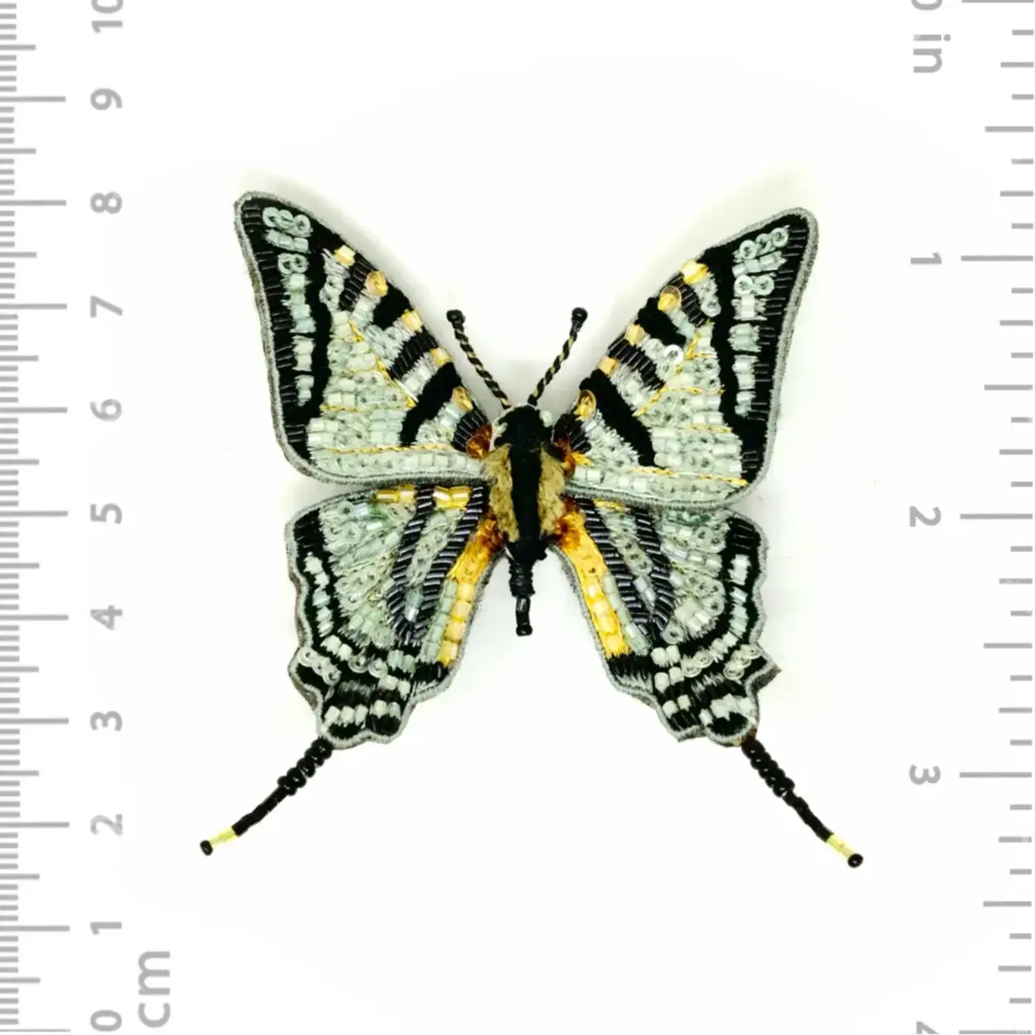 Delicately embroidered by hand, Trovelore brooch pins are made in small batches by skilled artisans in India, and embellished with intricate beads, threads and sequins.