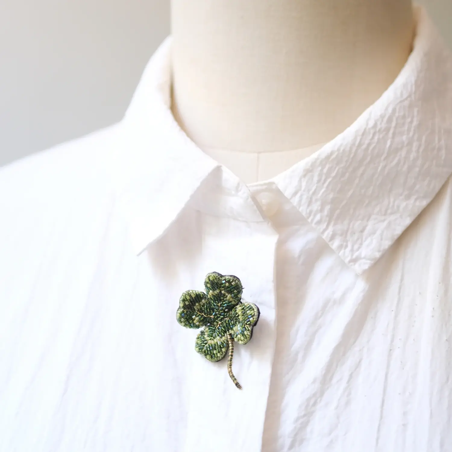 Delicately embroidered by hand, Trovelore brooch pins are made in small batches by skilled artisans in India, and embellished with intricate beads, threads and sequins.
