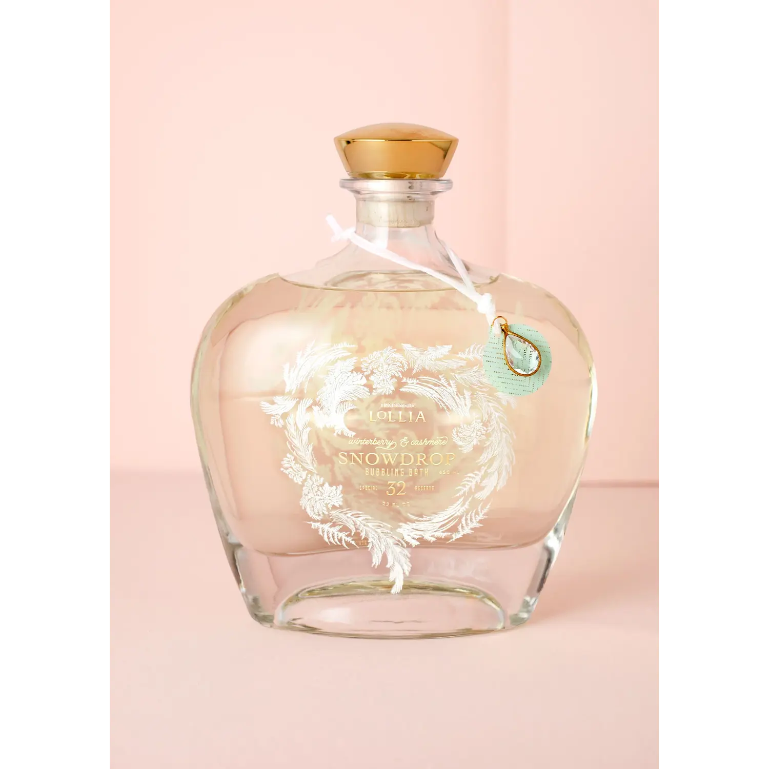 Lollia Snowdrop Bubble Bath is a luxurious, moisture-rich bubble bath featuring a blend of Winterberry, Cashmere, Bergamot, and White Woods, with added Avocado and Olive Fruit oils to hydrate and soften skin.