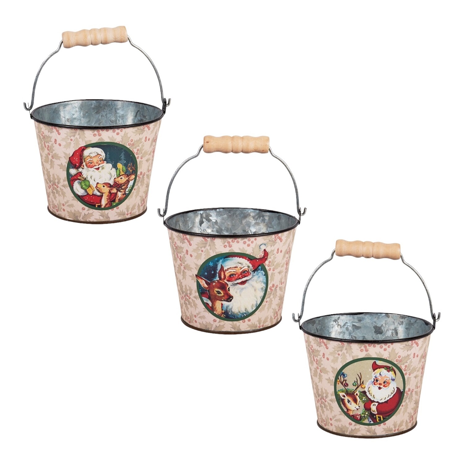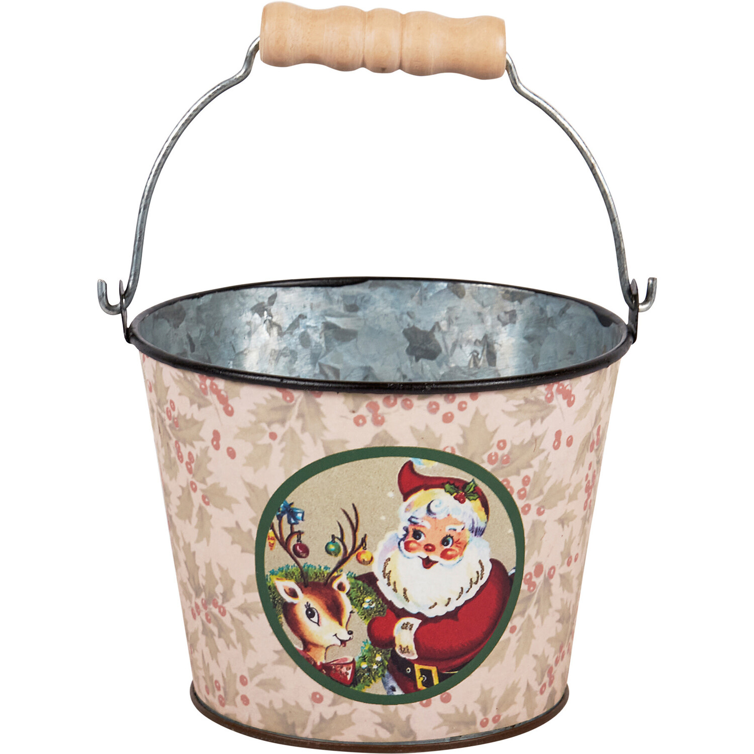 Add a touch of vintage charm to your holiday celebrations with a “Santa’s Watching” Metal Bucket.