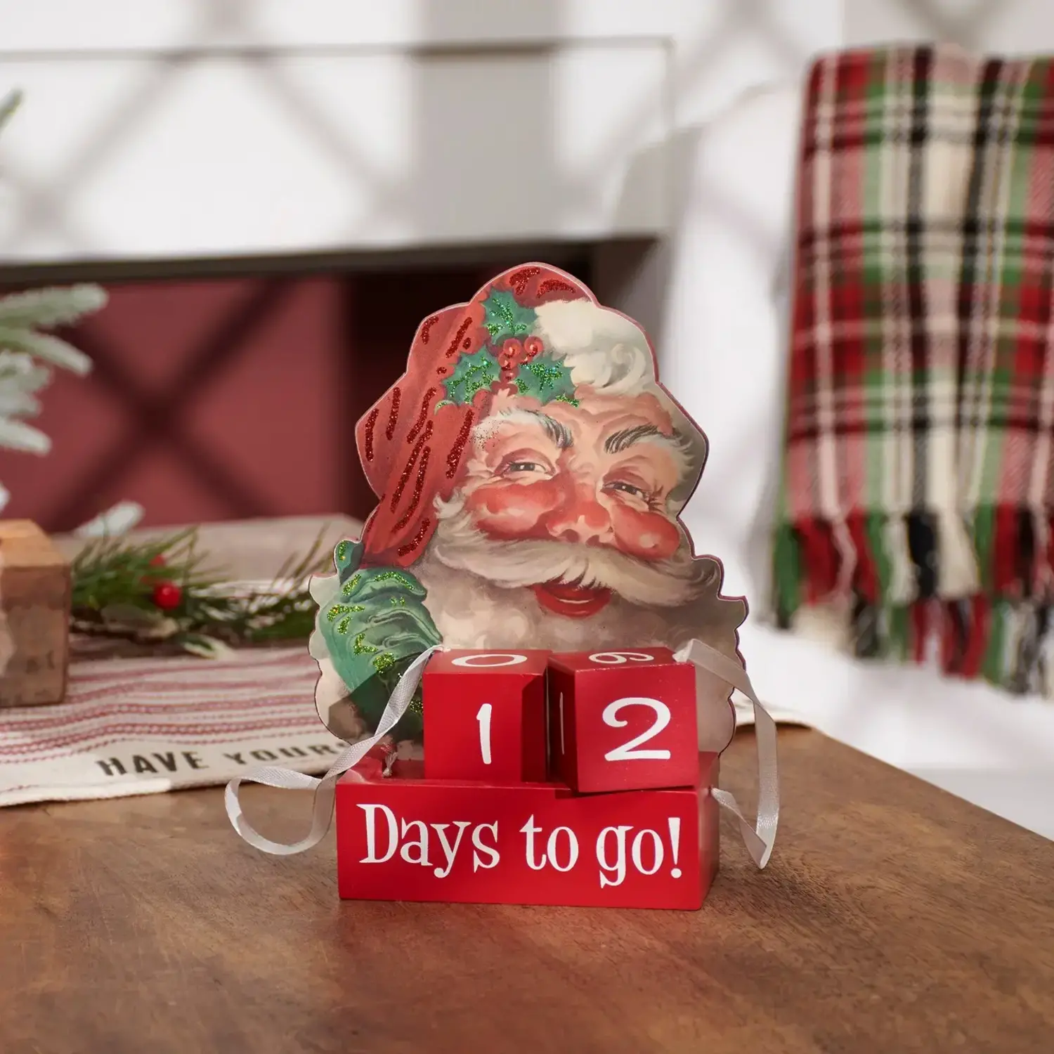 Featuring a vintage Santa face design with glitter accents and a playful "Days To Go!" sentiment, this countdown adds a jolly touch to your holiday decor.
