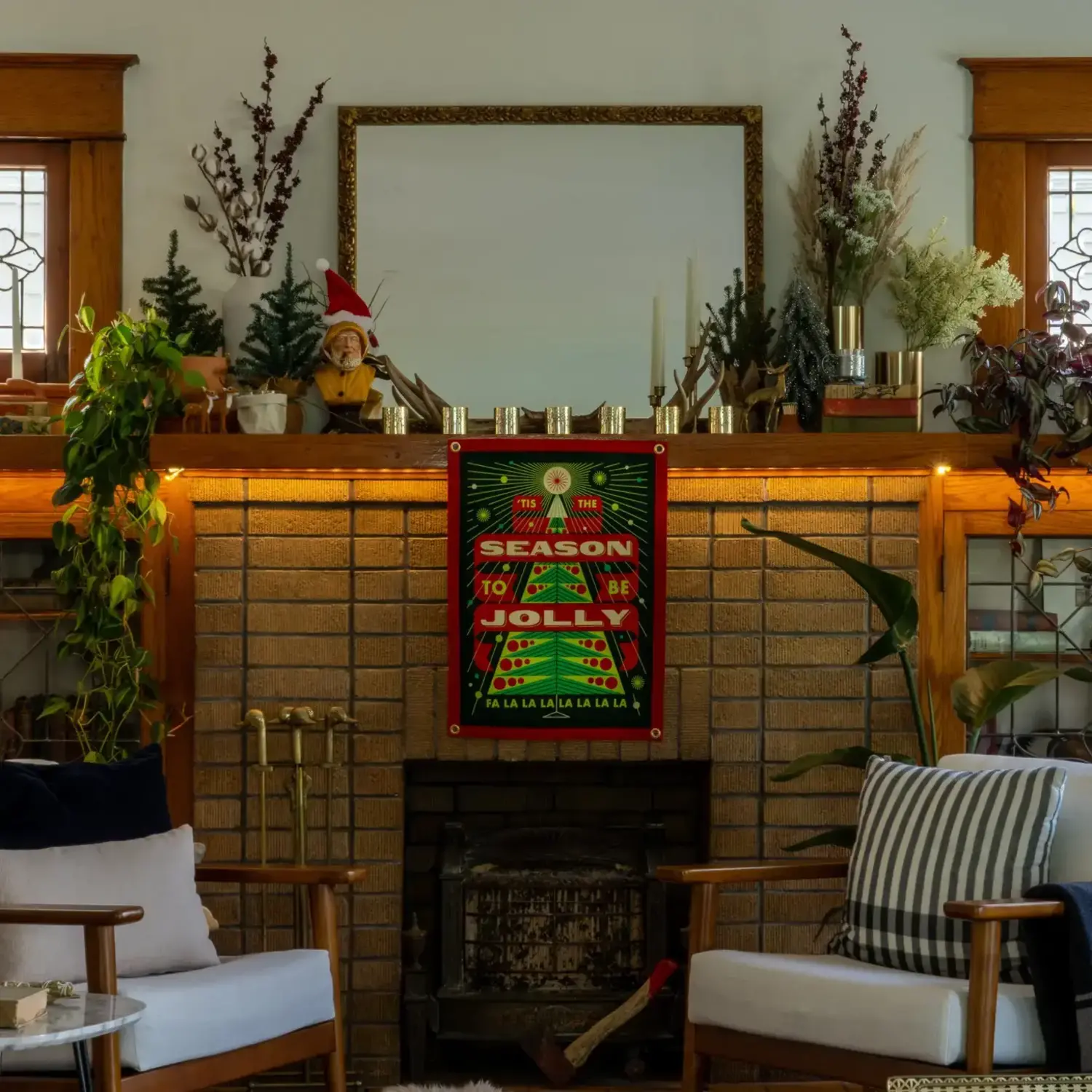 Add an extra touch of holiday cheer to your home this season by hanging this 'Tis The Season To Be Jolly camp flag by the chimney with care.