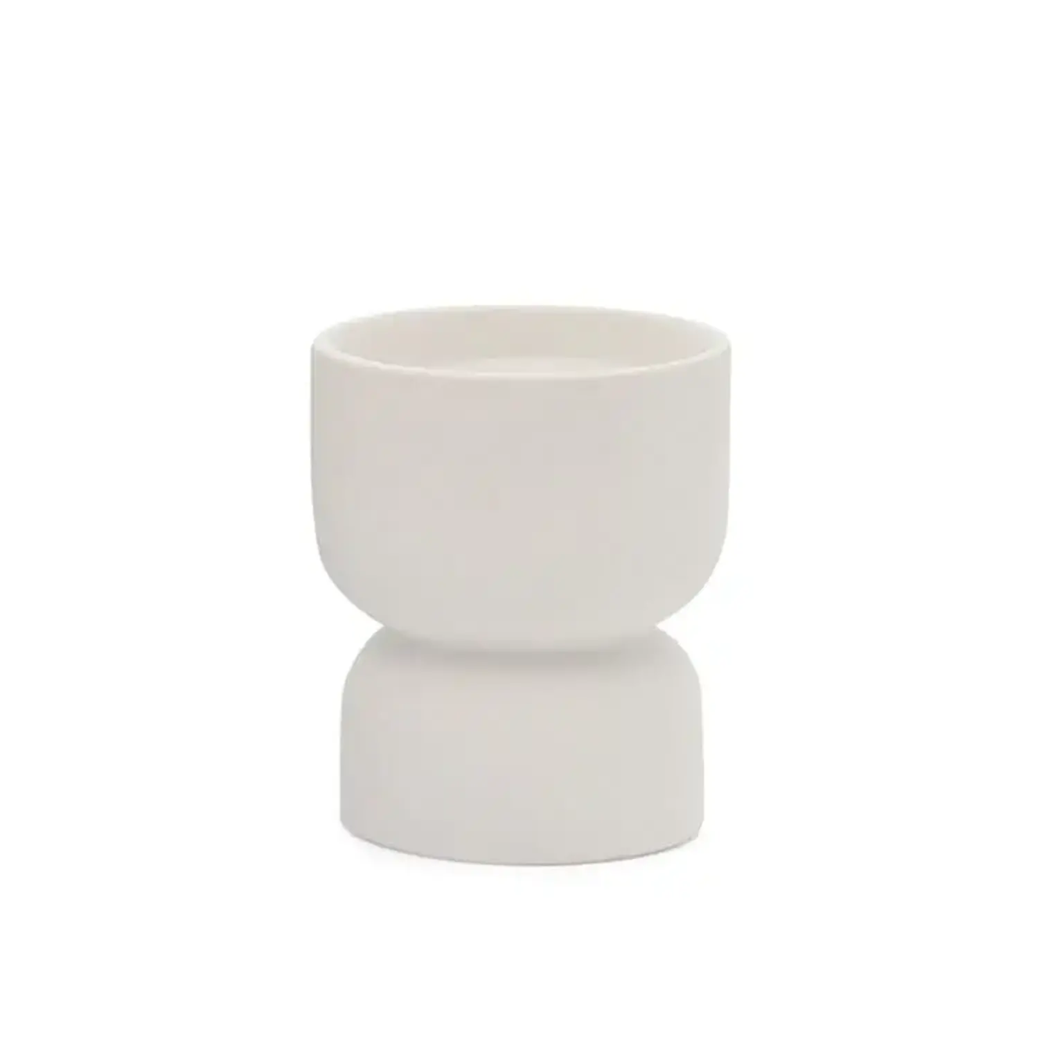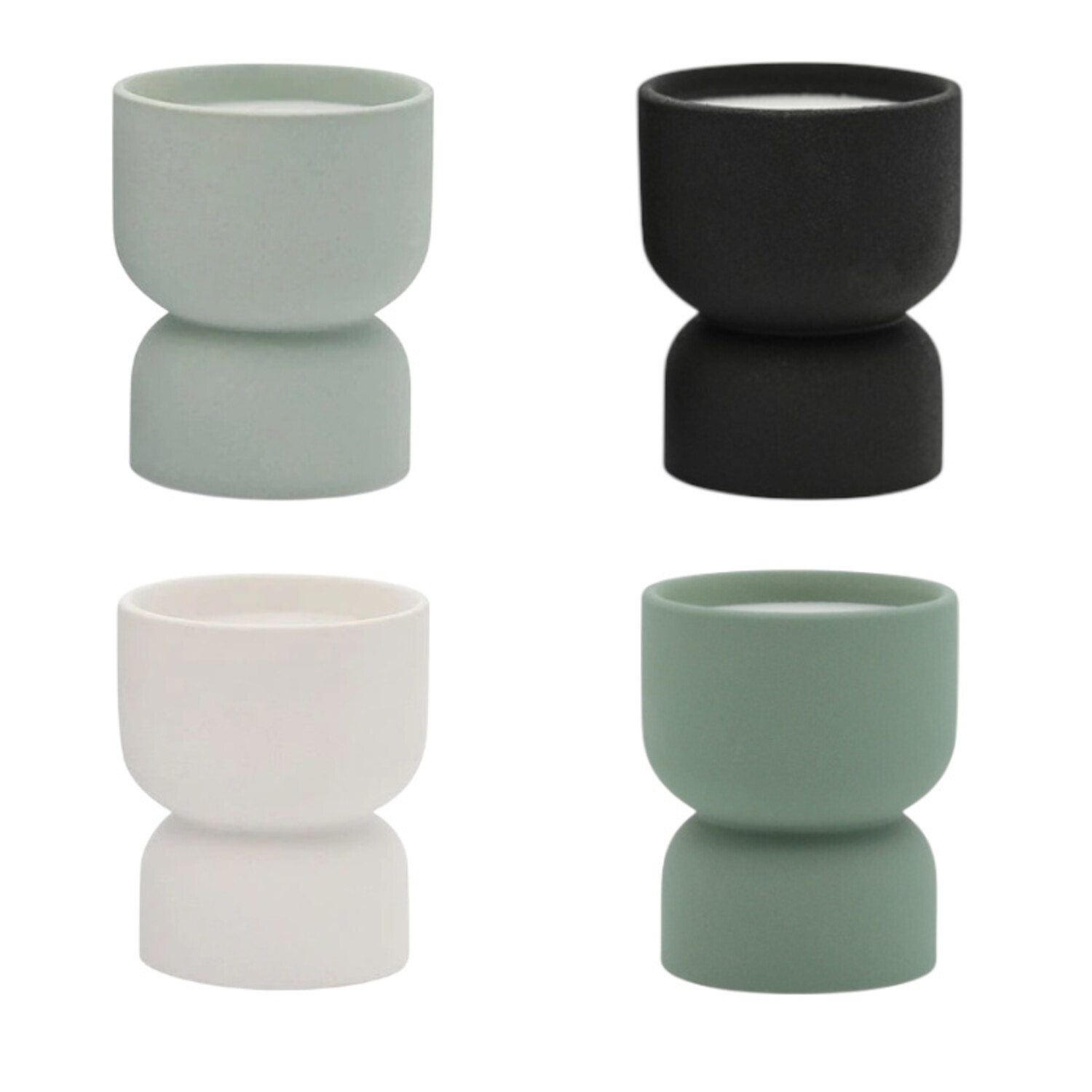 Form is inspired by gardens and the desert. These ceramic vessels with textured hourglass shapes bring a peaceful look and glow to your home.