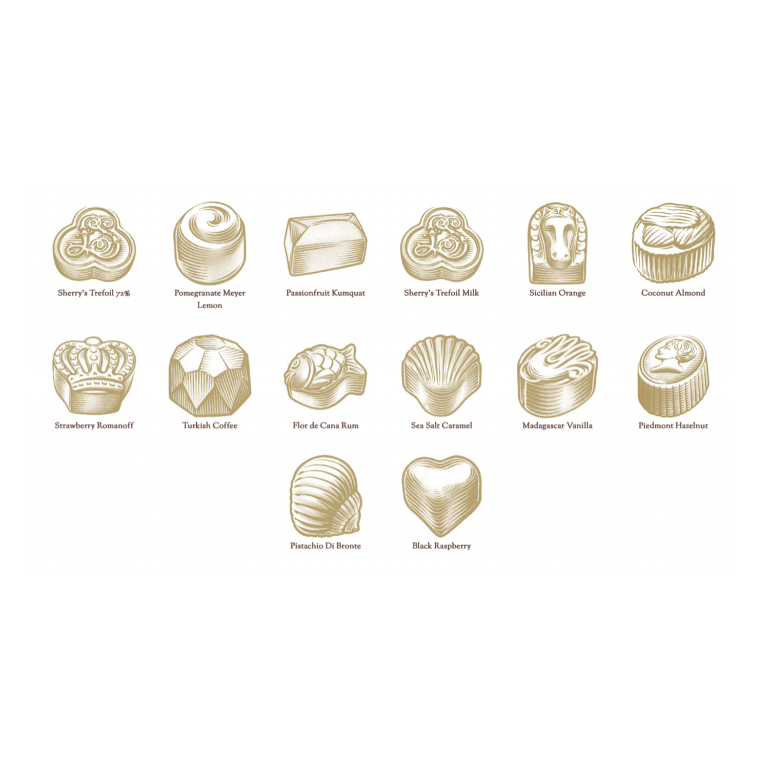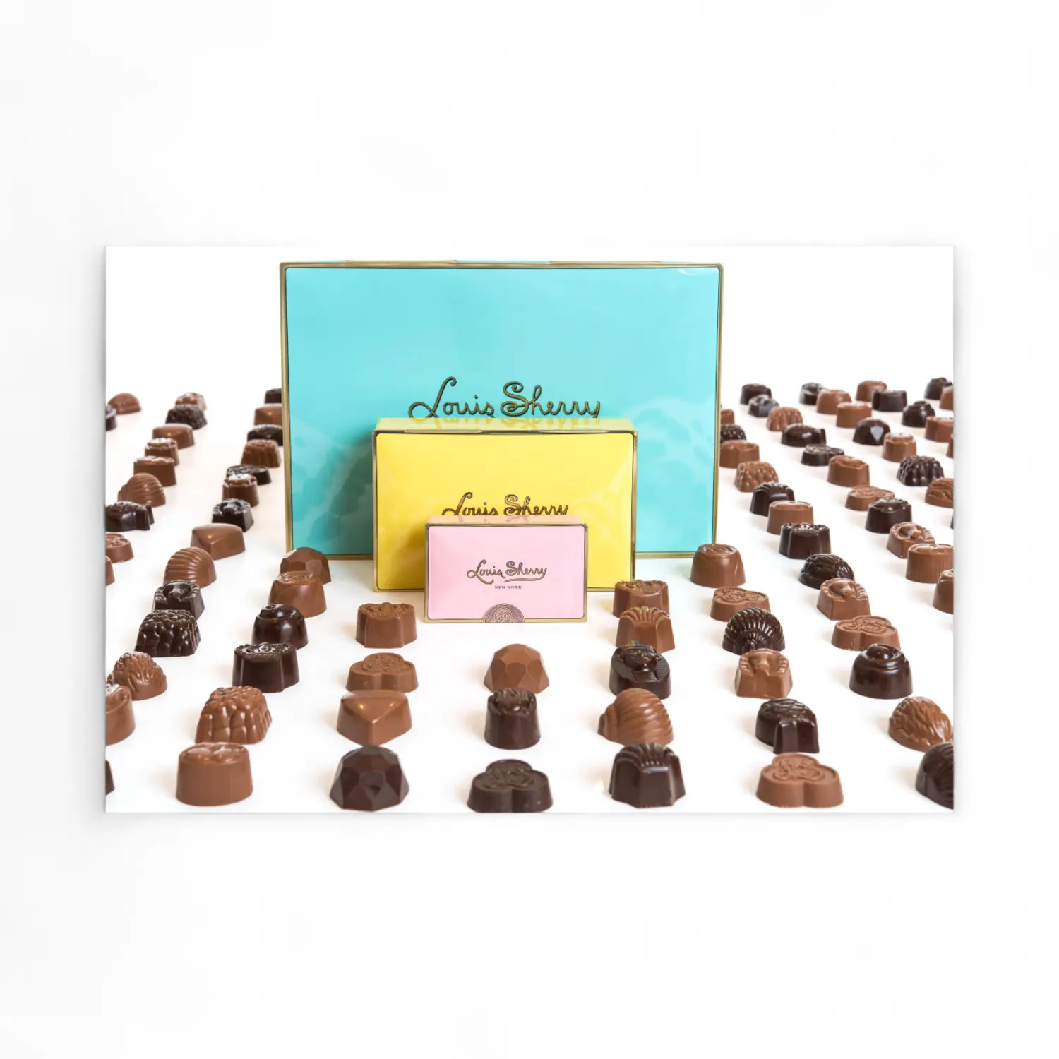 Emblematic gift box is composed of a house selection of exquisite Louis Sherry truffles renown for their creamy texture and exceptional silkiness.