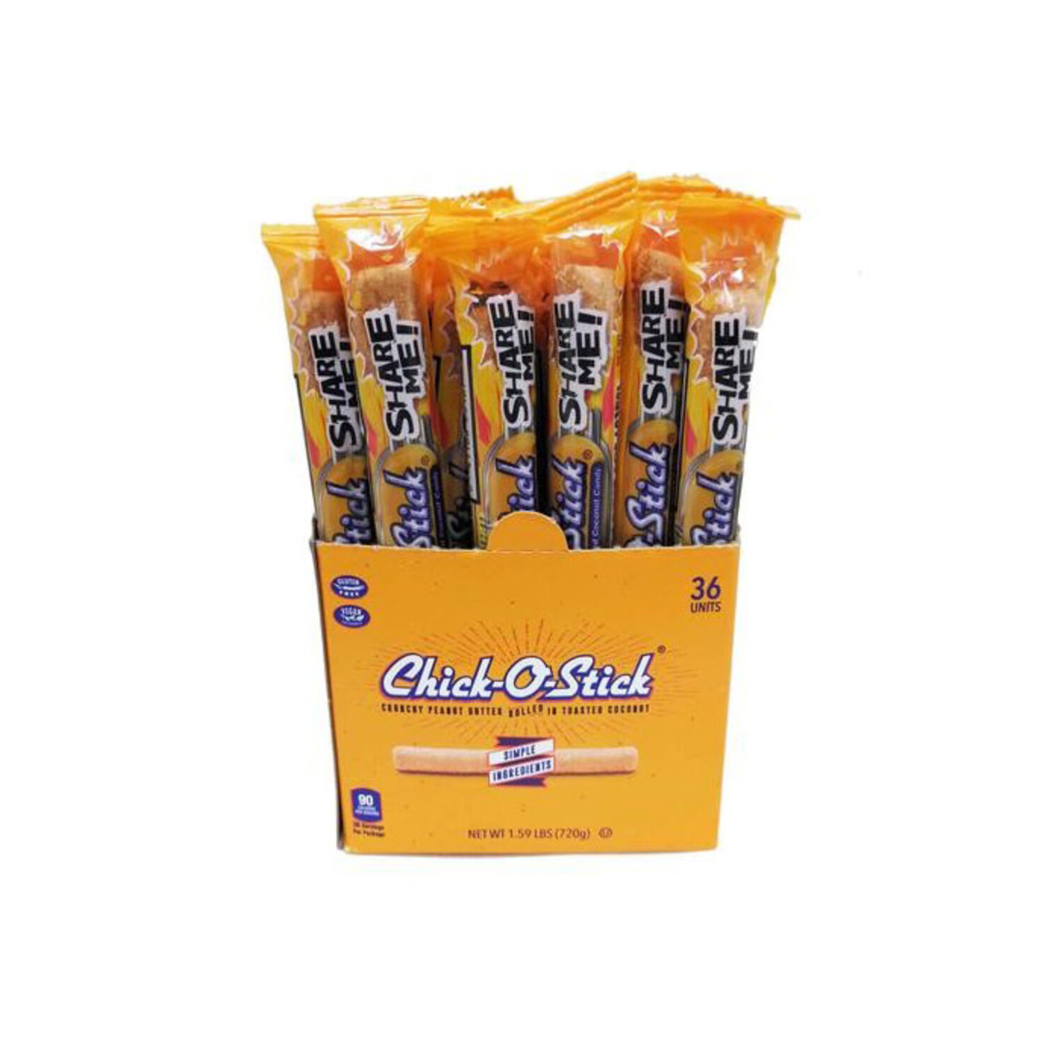 Chick-O-Stick in a .7 oz size is a crunchy candy bar made of toasted coconut rolled around a savory peanut butter center.