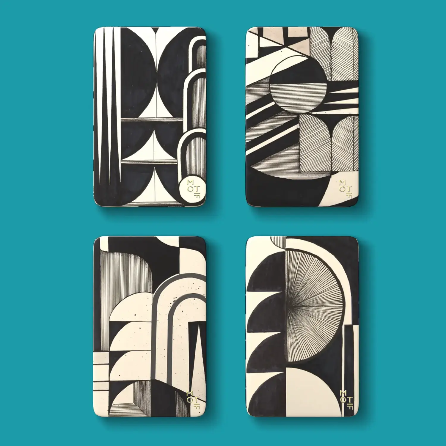 Although lacking in color, this collection is anything but dull. Combining monochrome patterns and striking geometrics, this contemporary collection draws inspiration from the Art Deco movement.