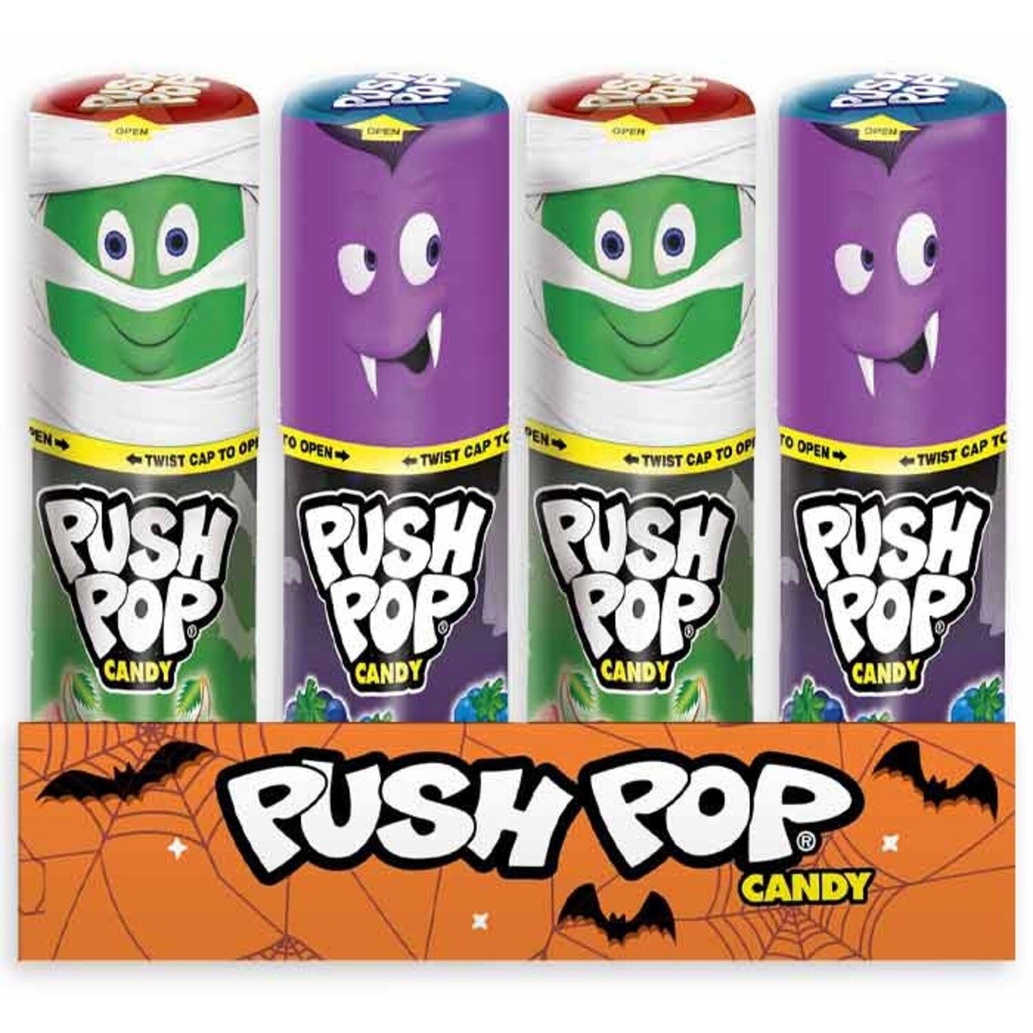 Halloween Push Pops are back from the candy crypt and they’re rocking flavors like Cherry, Watermelon, and Blue Raspberry—aka the Holy Trinity of tongue-dyeing goodness.