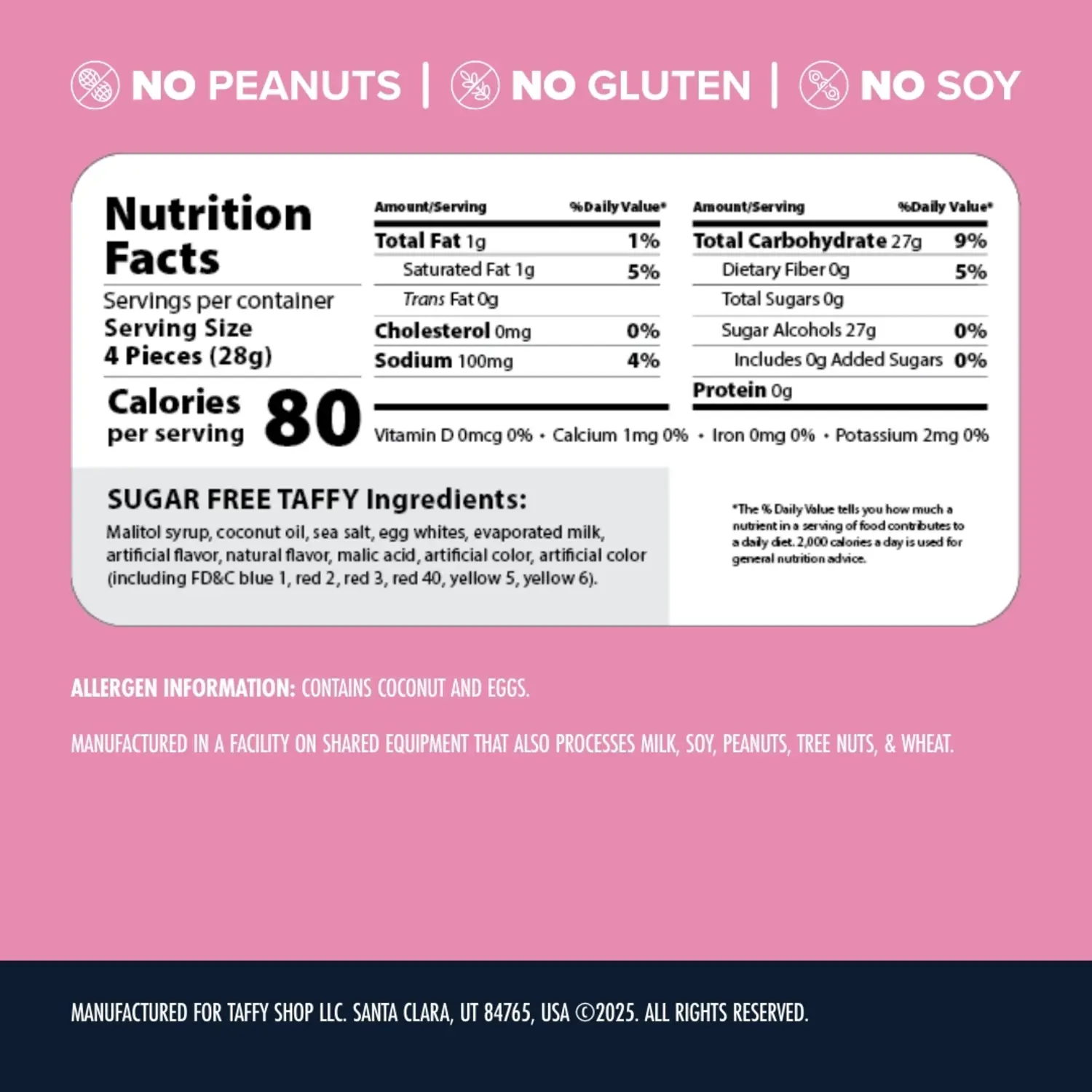 Taffy Shop's Sugar-Free Favorites™ saltwater taffy is guaranteed fresh and made with love in the USA.