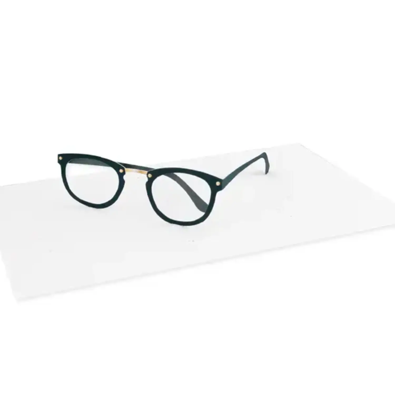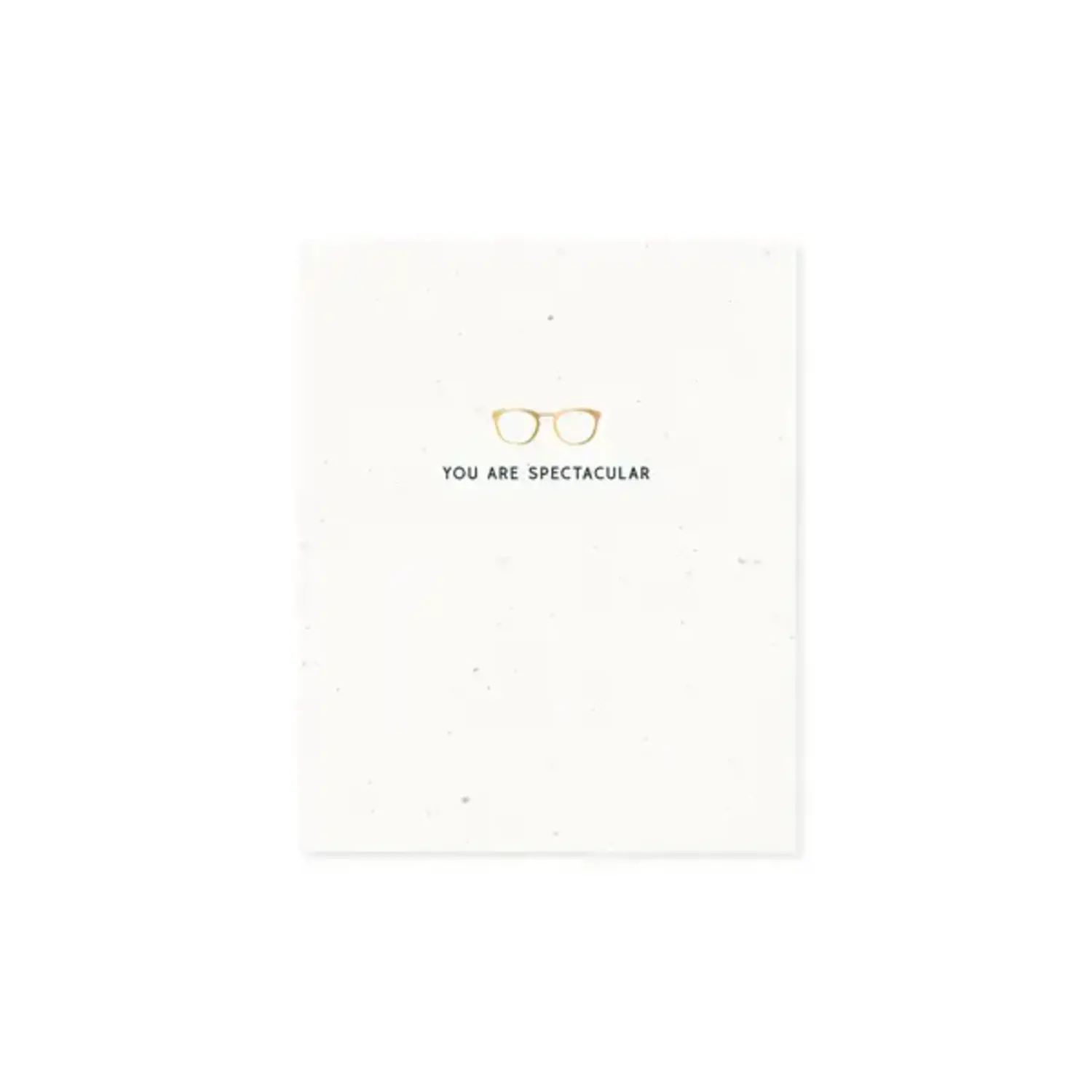 Simple and classic. Glasses rest on the card as if waiting to be worn.