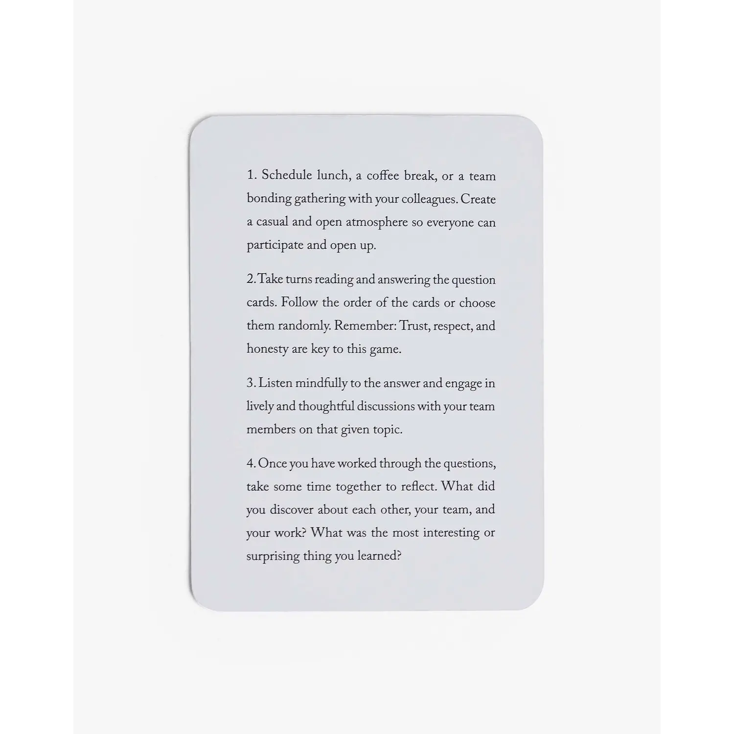 With 50 thought-provoking prompts, it's is designed to bring your team closer together and enhance the way you work and interact.