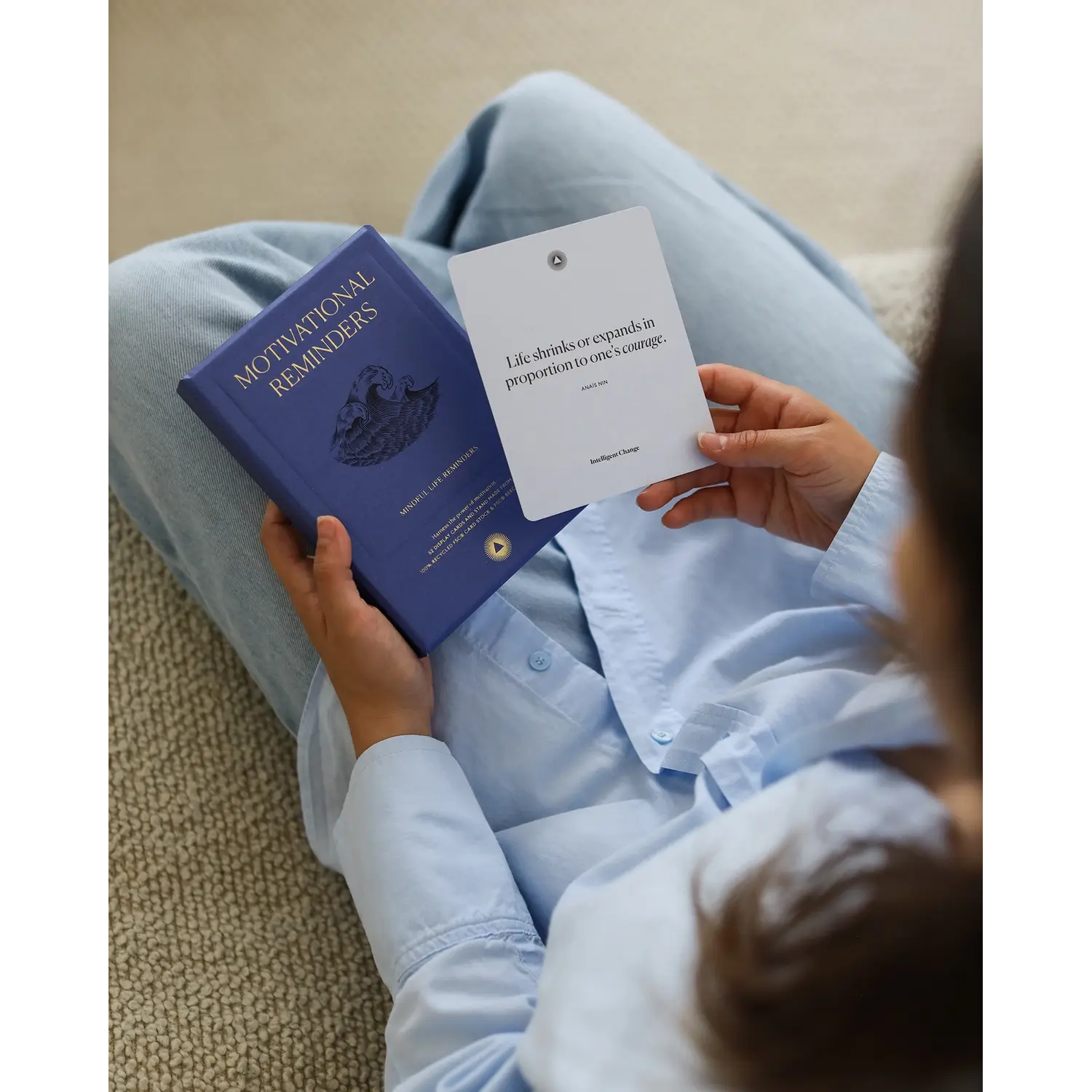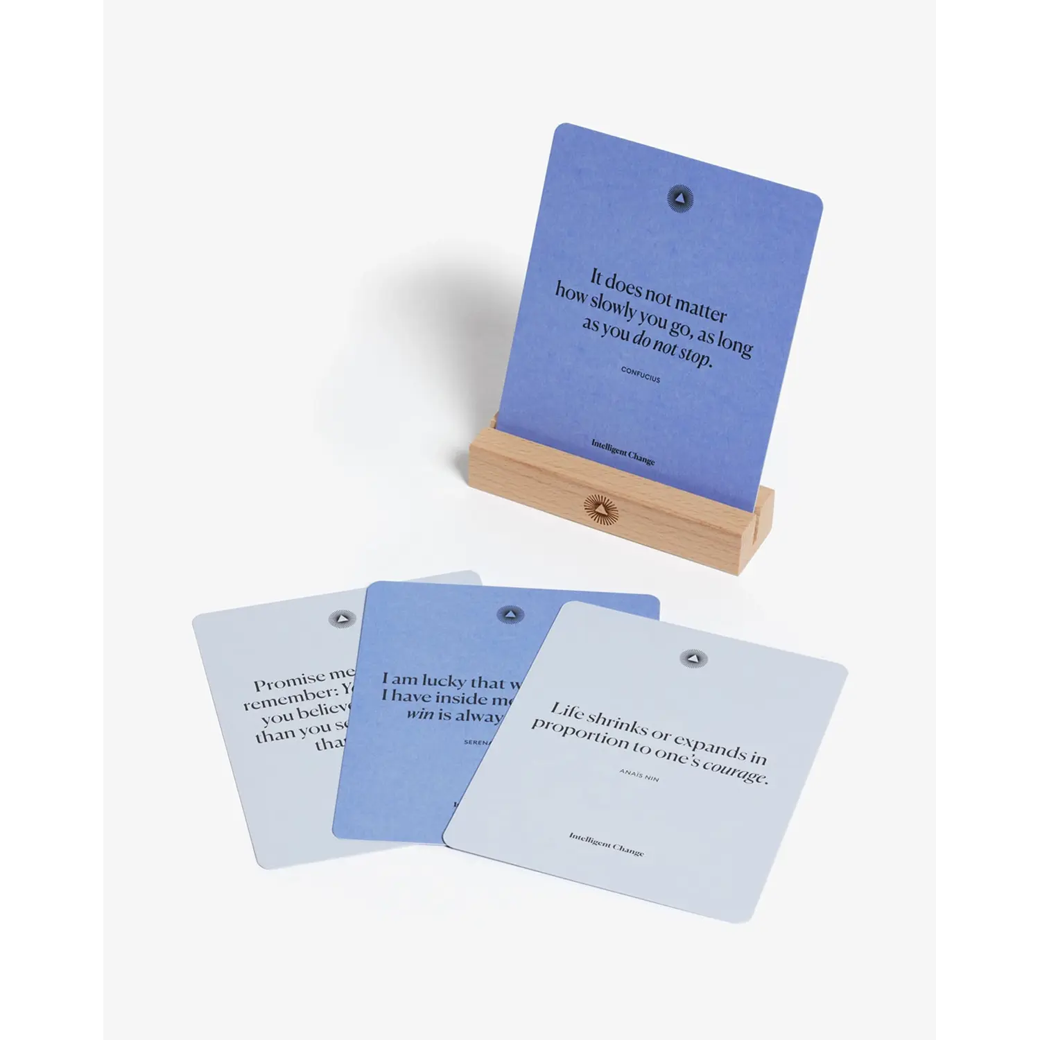 Each double-sided card features an empowering quote on one side and a thoughtful prompt on the other, giving you practical ways to turn motivation into action.