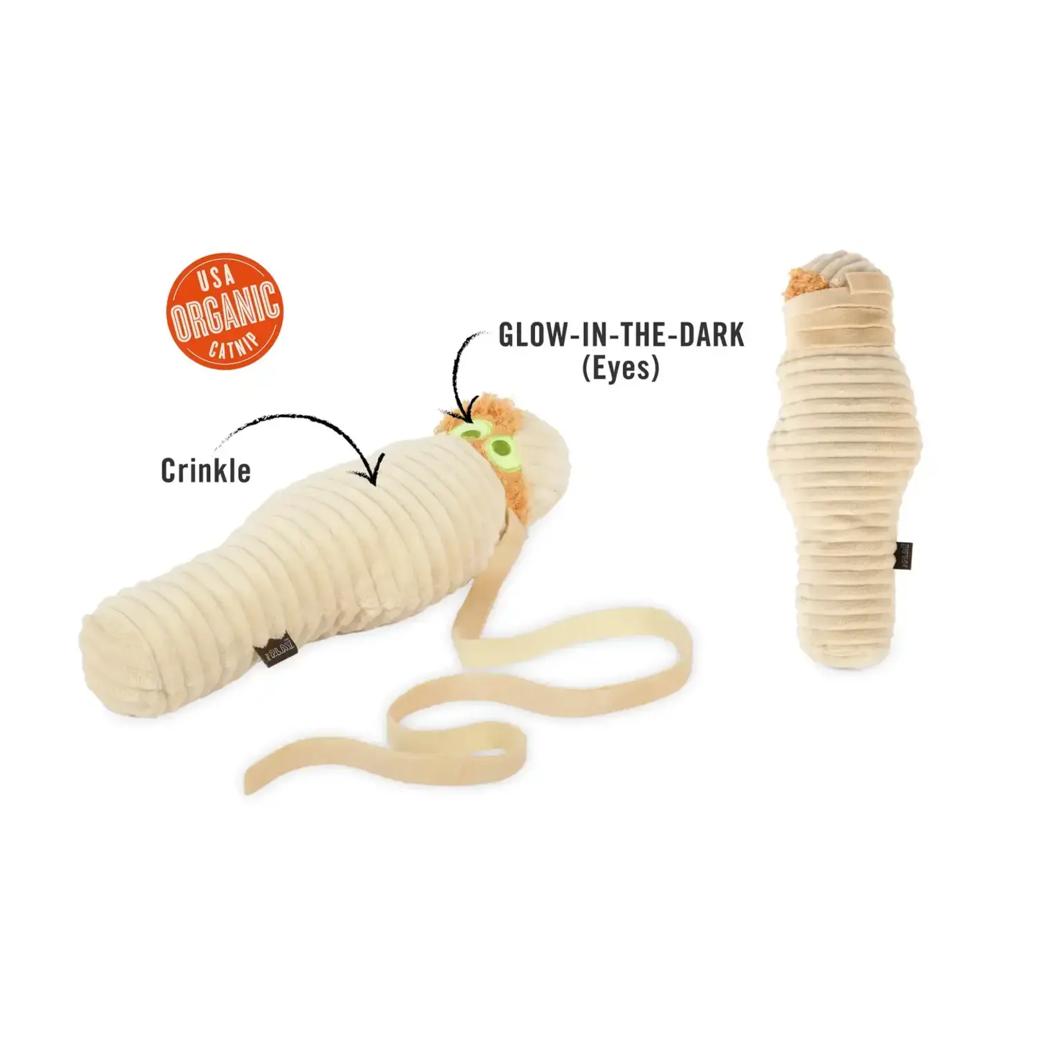 Watch as your cat is mesmerized by this mummy’s crinkles and glow-in-the-dark eyes.