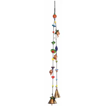 Copper, hand blown glass beads, and the unique Nana bells are put together in various forms to make these beautiful mobiles.