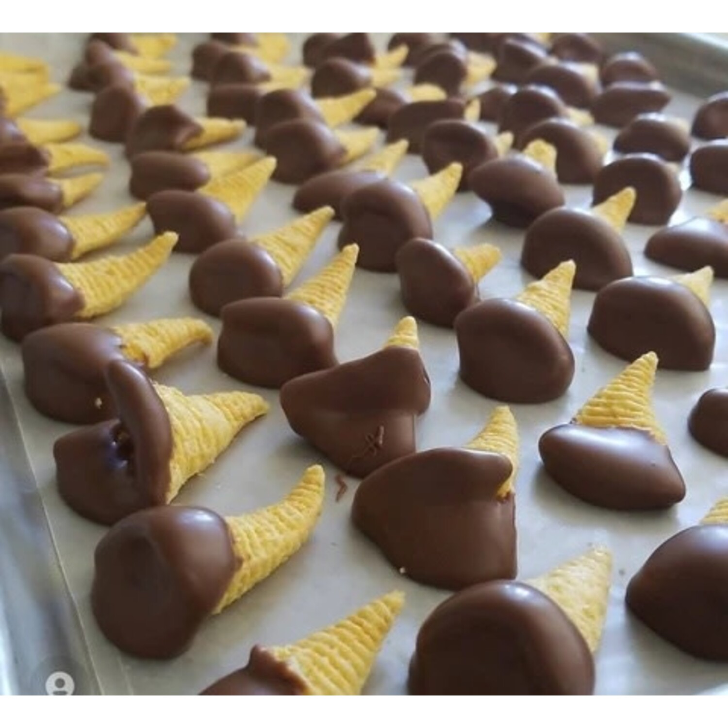 These Bugles are dipped in chocolate and make a perfect sweet and salty snack!