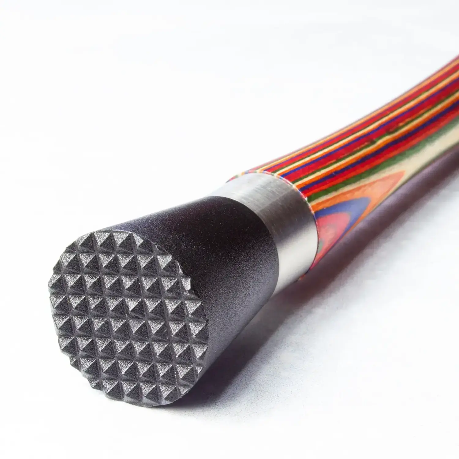 The muddler's handle is masterfully crafted from layered birch wood.