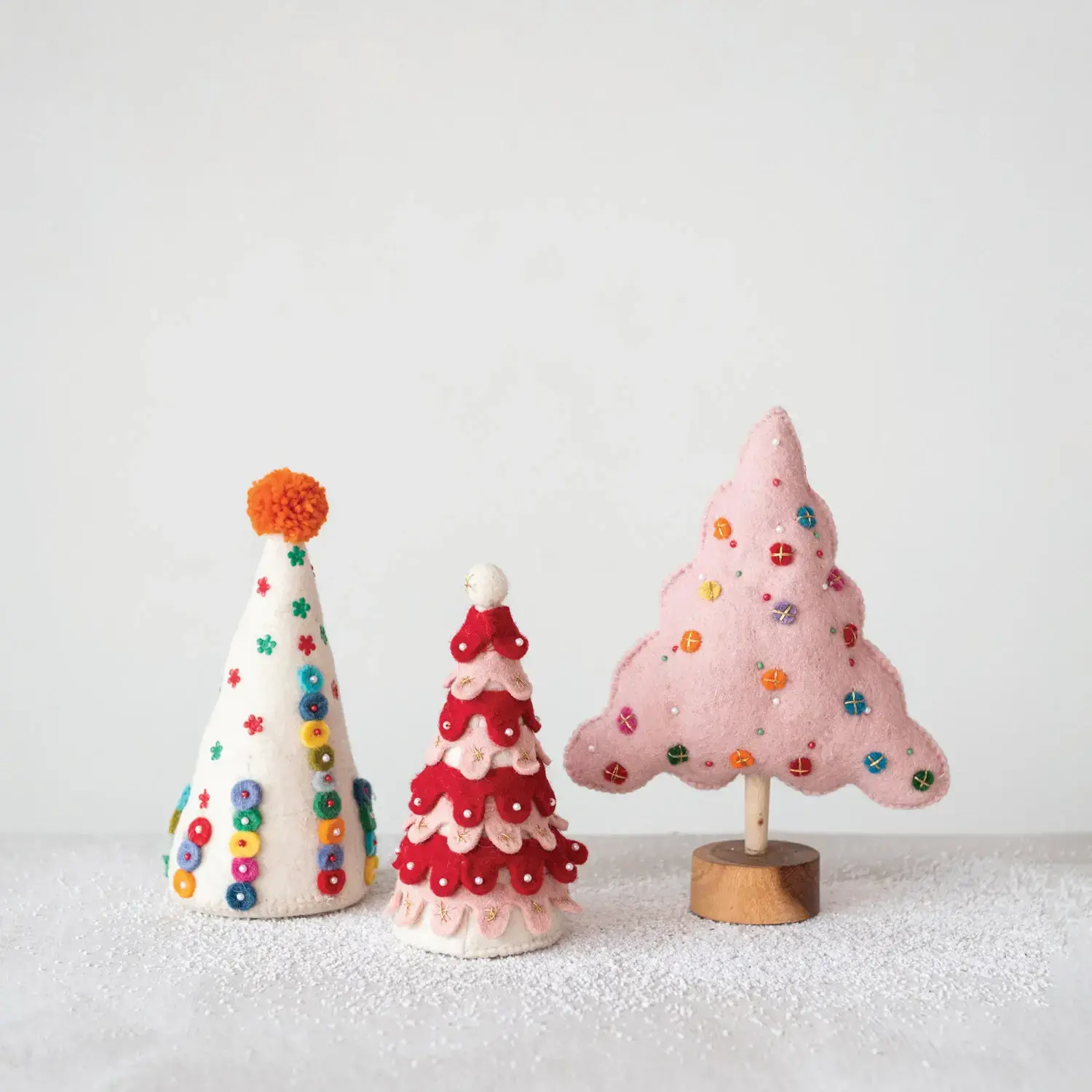Figure | Pink Felt Tree | Beads + Applique + Embroidery