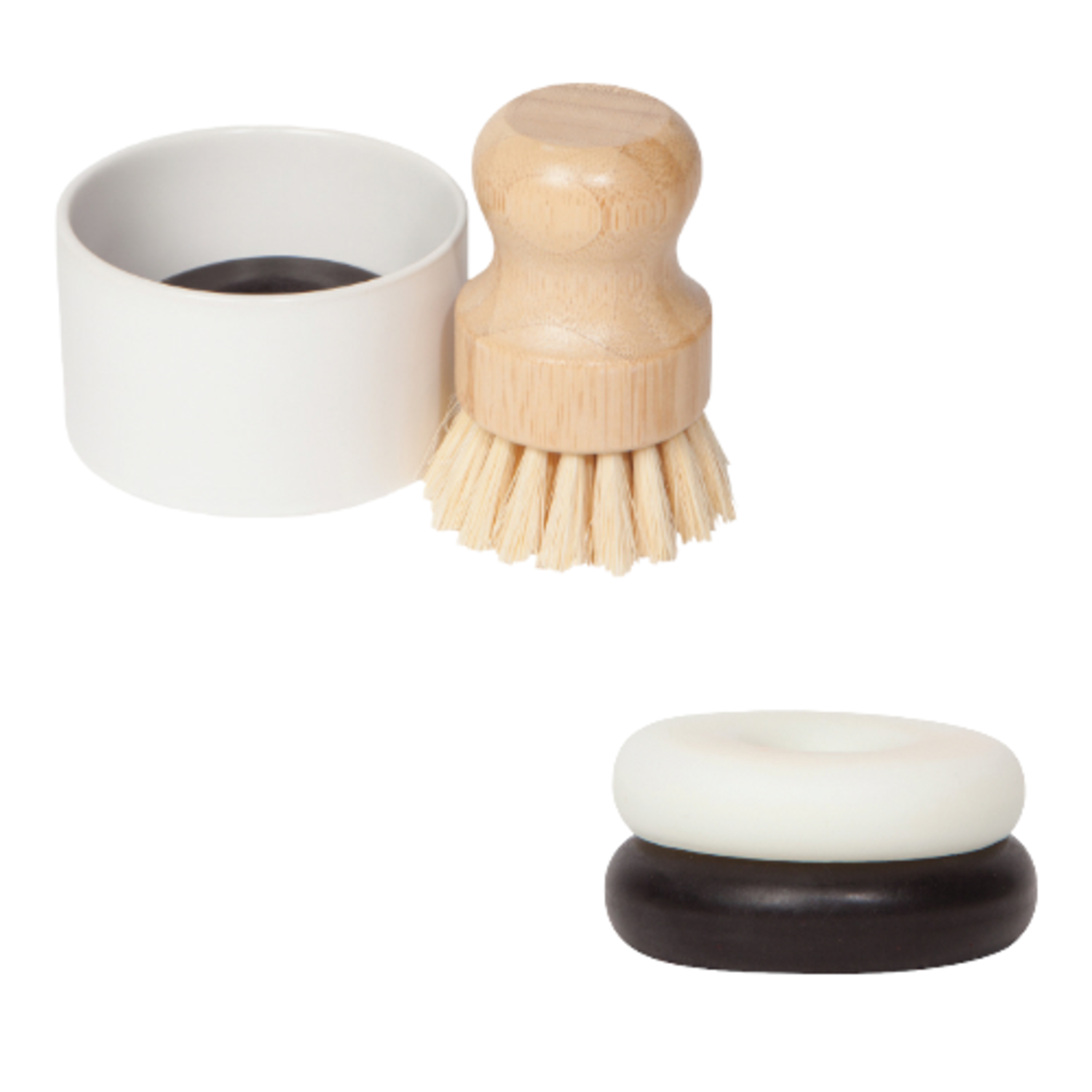 Each set includes a bamboo brush, a ceramic holder, and a natural olive/coconut oil soap.