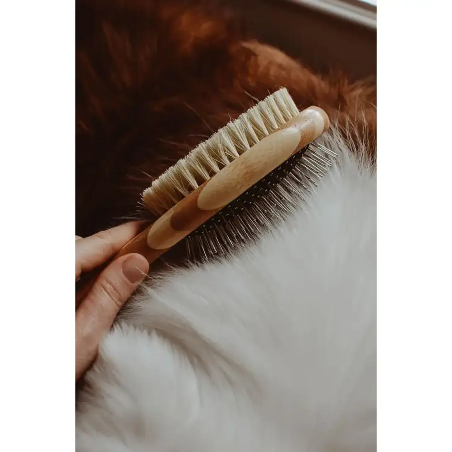 Two-Sided Bamboo Dog Brush with Sisal Bristles/Wire Brush.