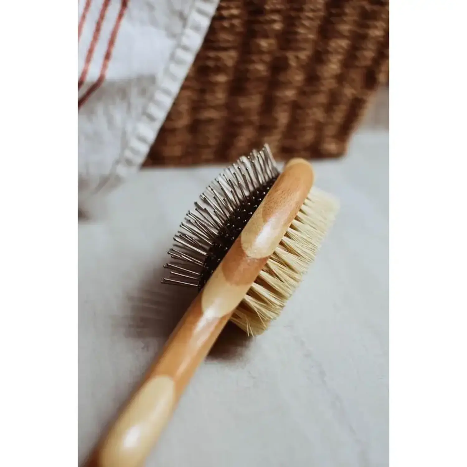 Dog Brush | Two-Sided Bamboo | Sisal Bristles/Wire Brush