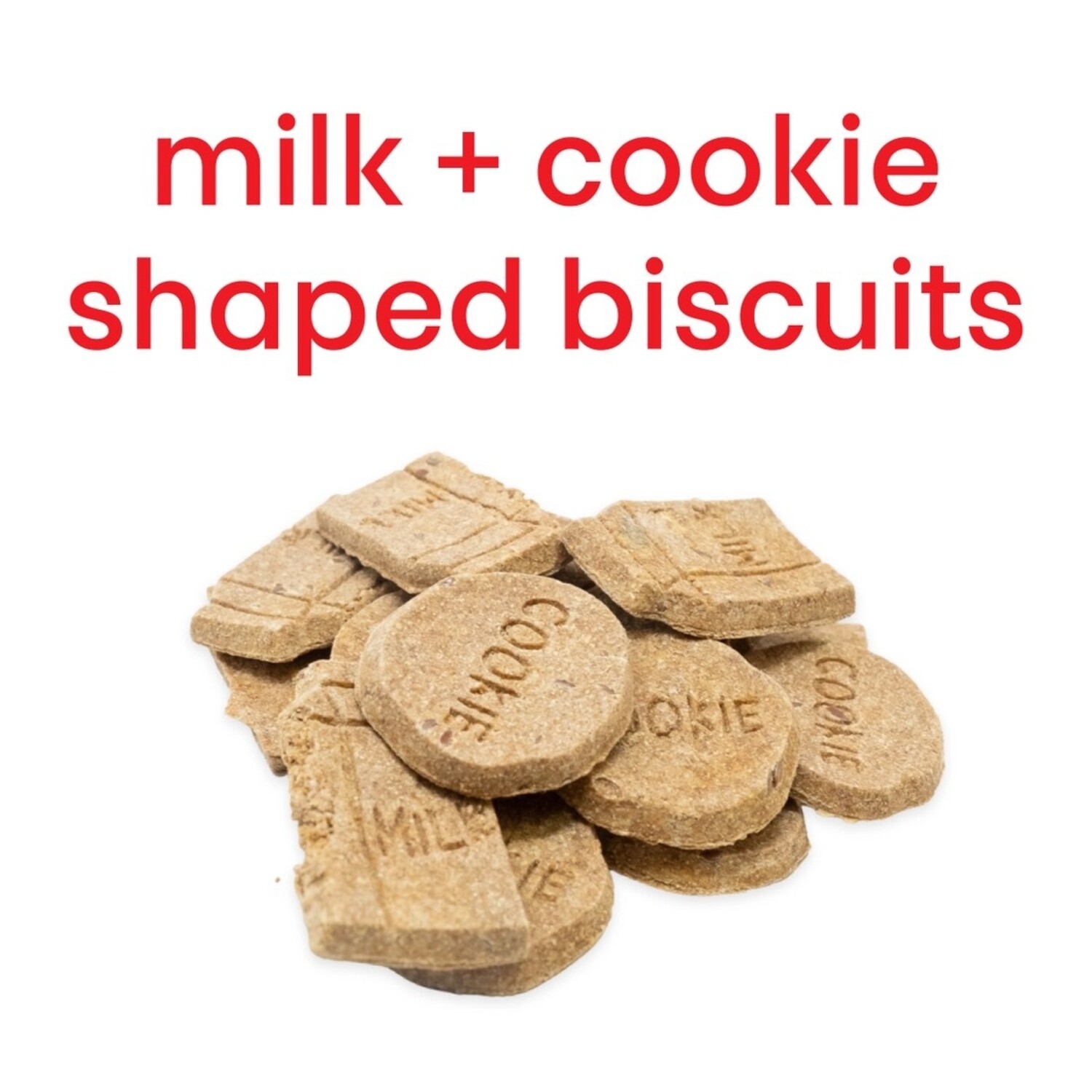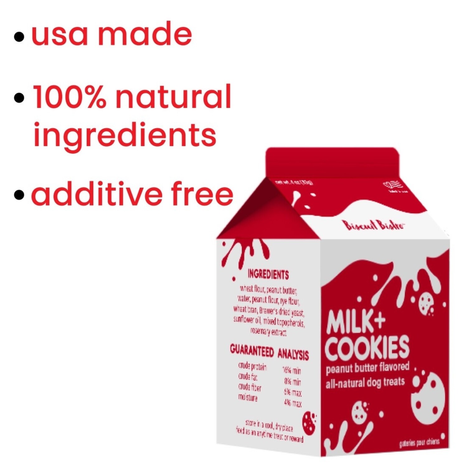 These natural peanut butter treats are shaped as Milk and Cookies and packaged in adorable “milk cartons."
