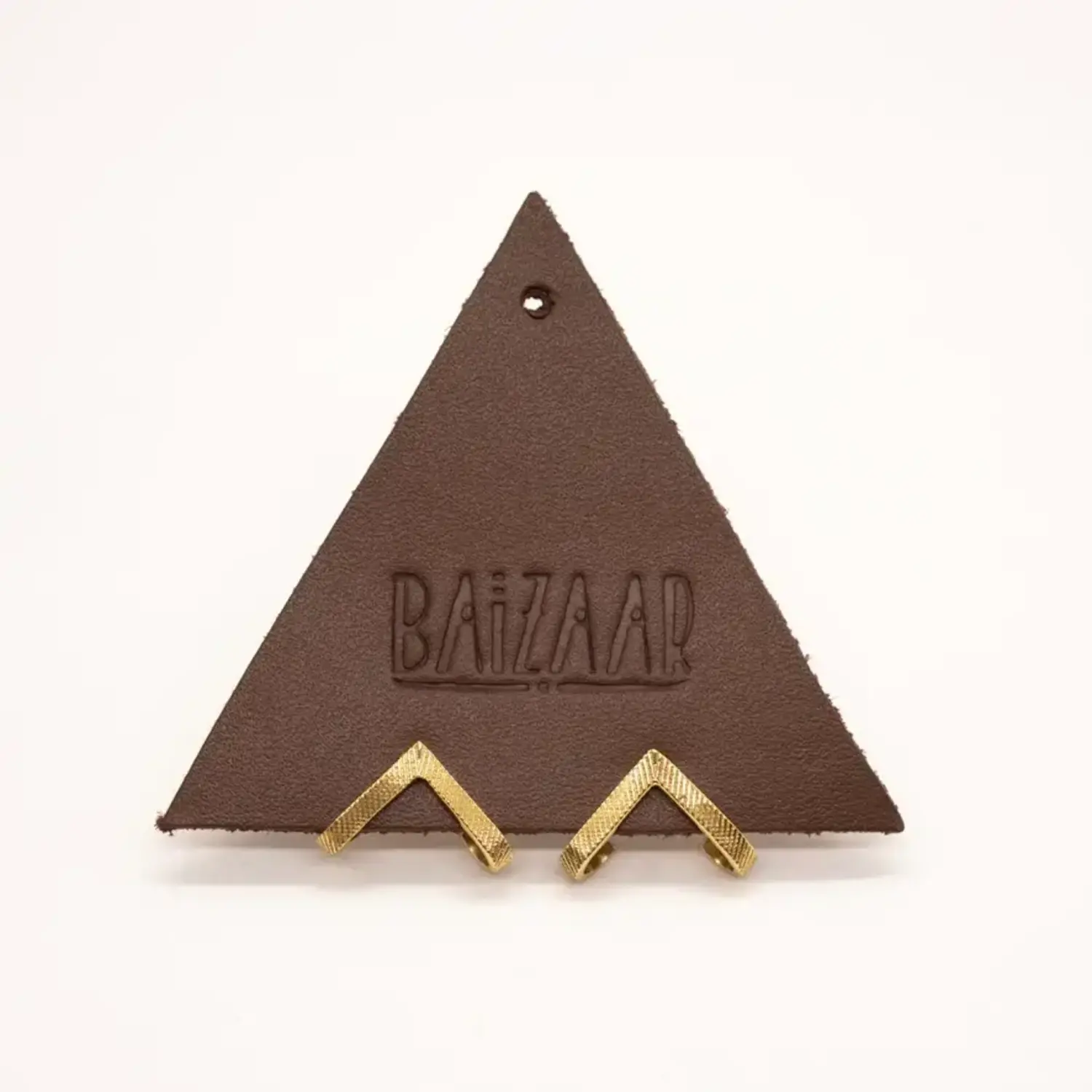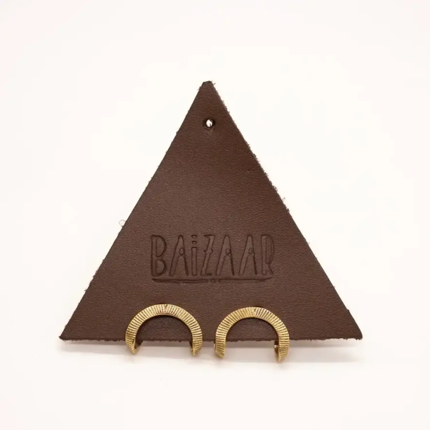Etched Lines Brass Stud Earring that wraps around the ear lobe.