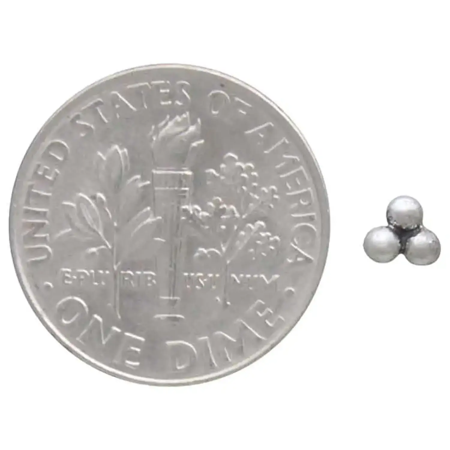 Three spheres arranged in a triangle pattern make up this sterling silver 3 granulation dots post earrings.