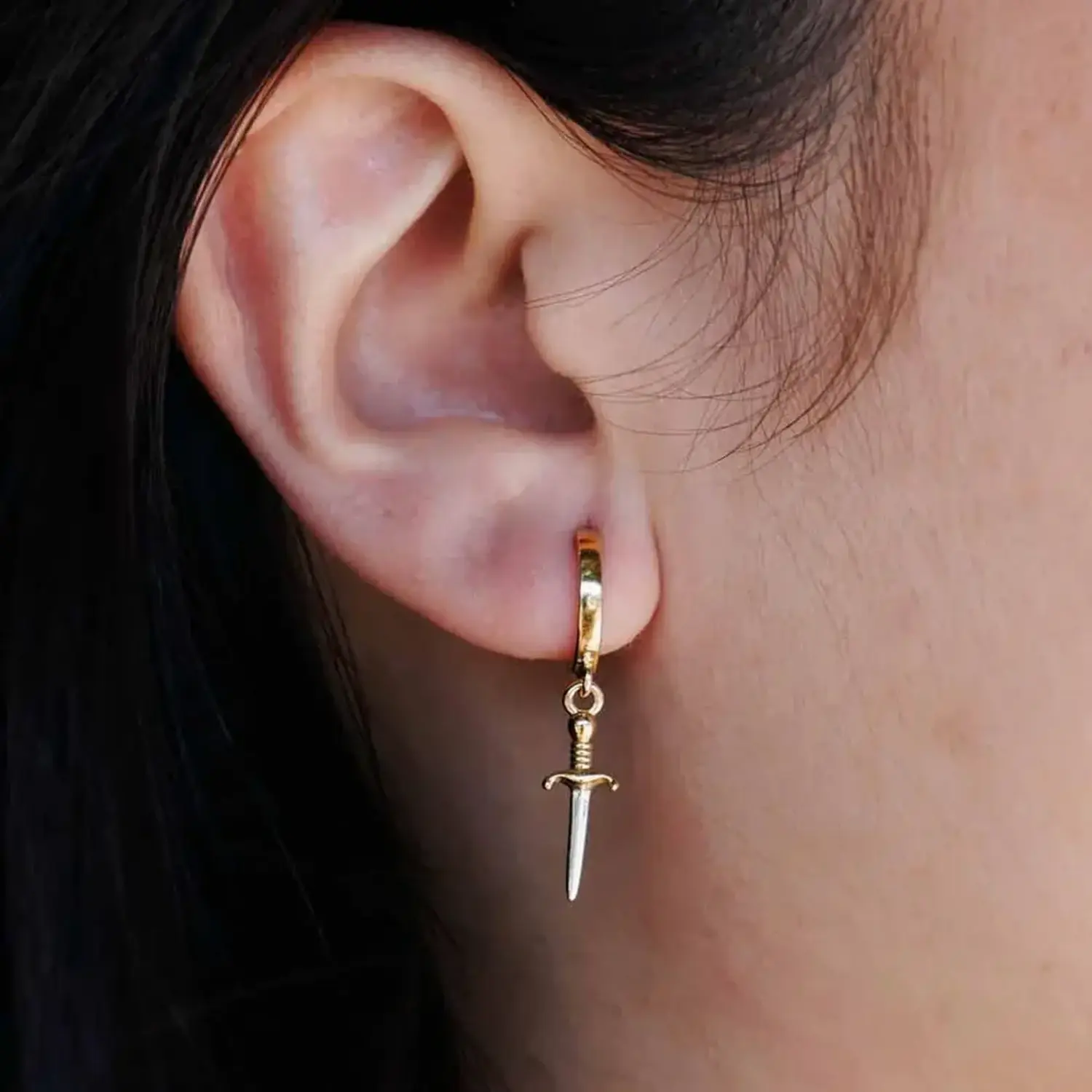 Earrings | Huggie Hoops | Mixed Metal Daggers
