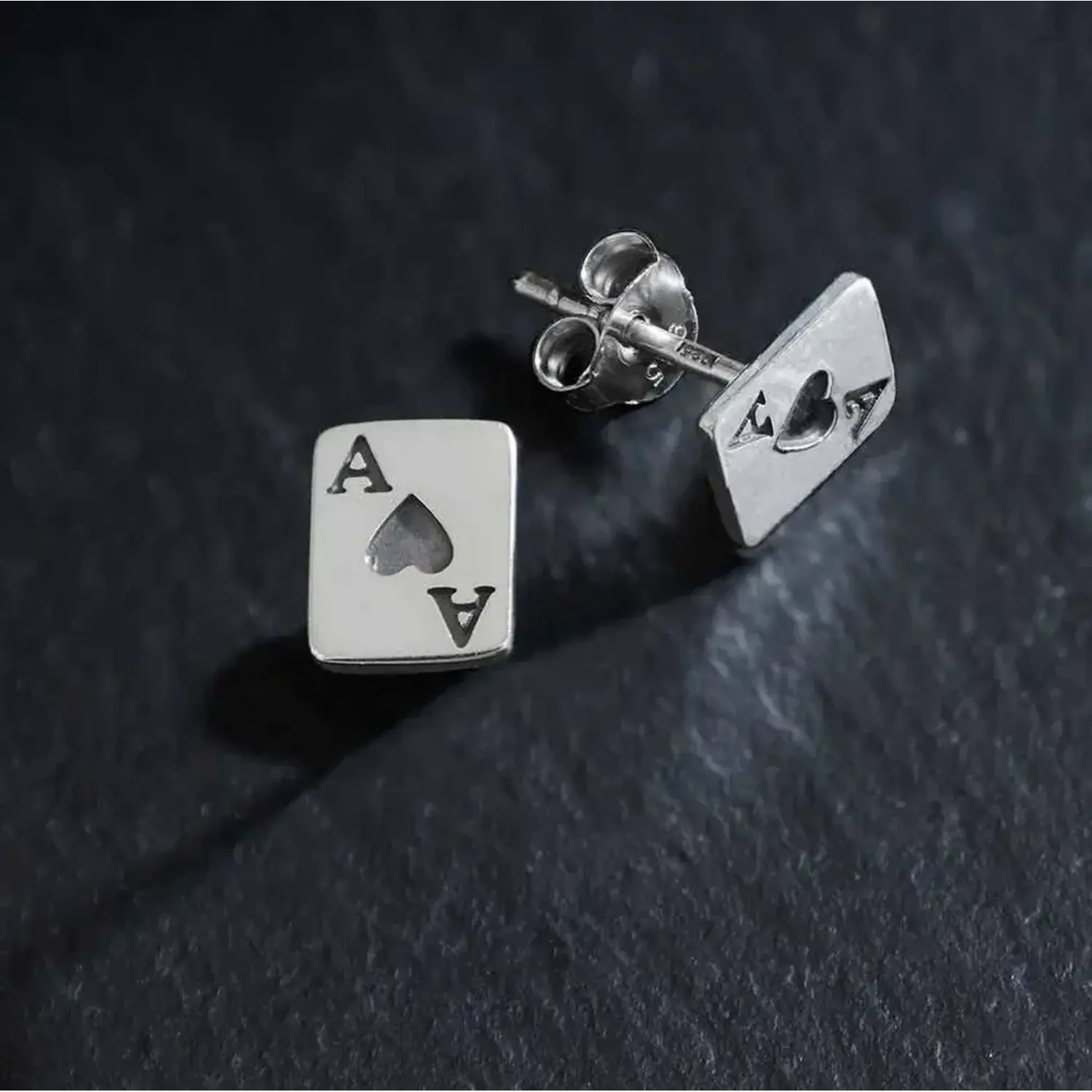 These sterling silver tiny Ace of Hearts stud earrings are a playful accessory perfect for both men and women who enjoy games of chance and living life with a bit of risk and luck.