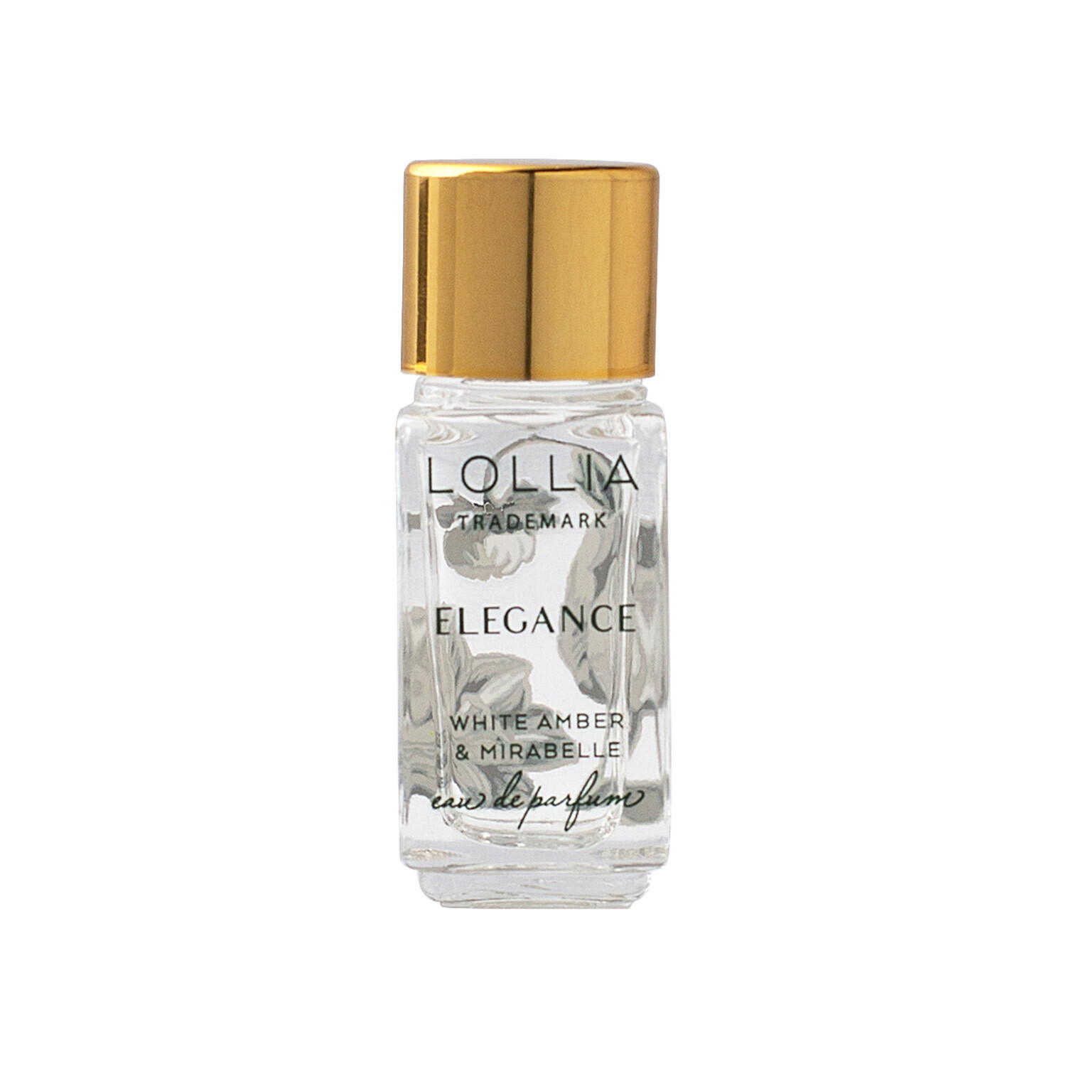 Perfectly petite, this radiant glass bottle displays a cascading floral pattern and is crowned with a modern metallic-gold cap.