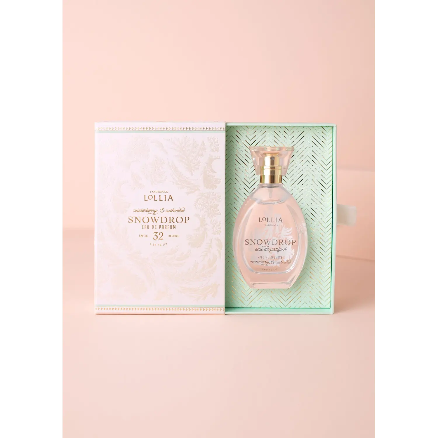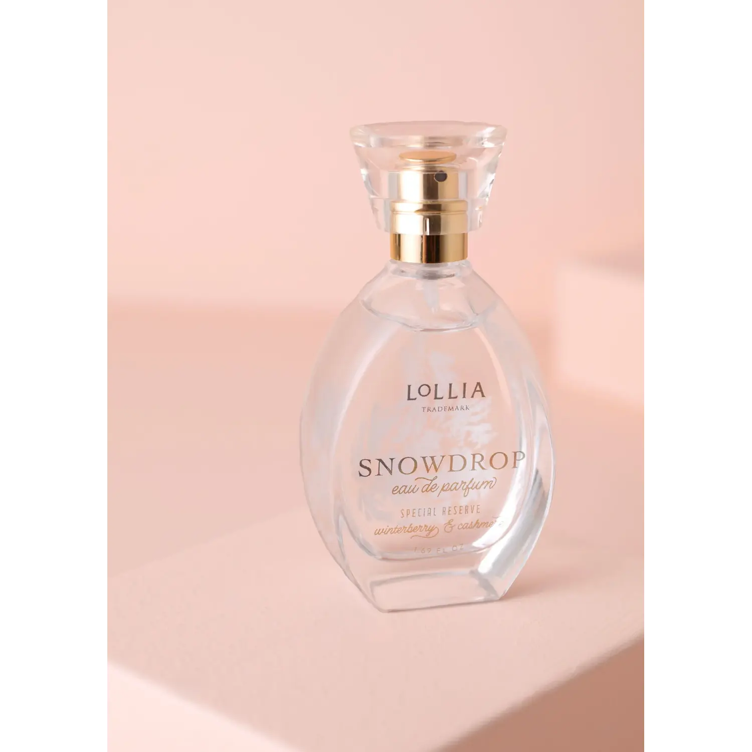 Lollia Snowdrop is an eau de parfum from the Lollia fragrance house that features a blend of Winterberry, White Woods, Bergamot, Camellia, and soft Cashmere notes, aiming to evoke the beauty of a frost at dawn.