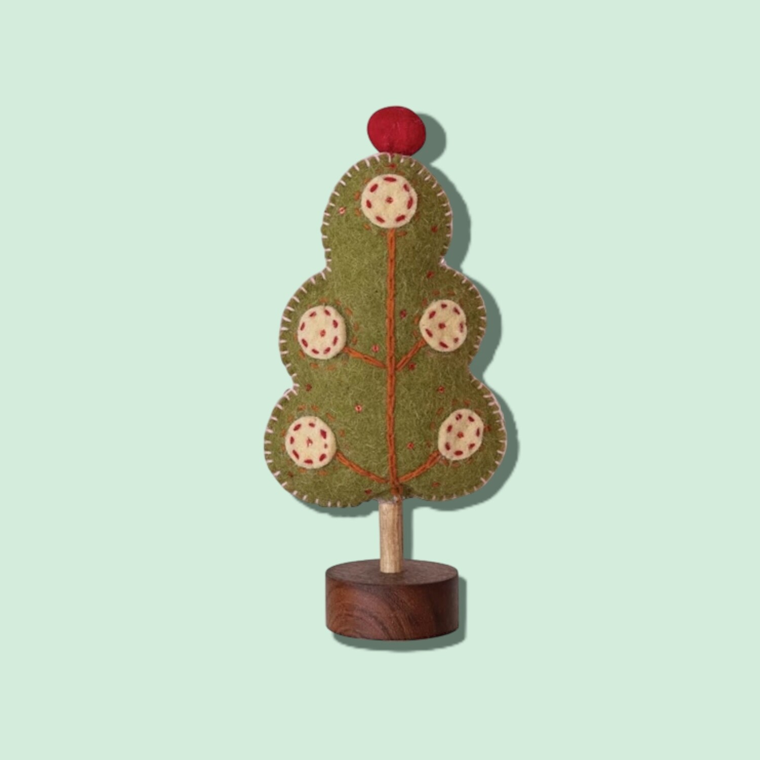 Tree | Felt Wool | Scalloped Edge | Green + Red Pom
