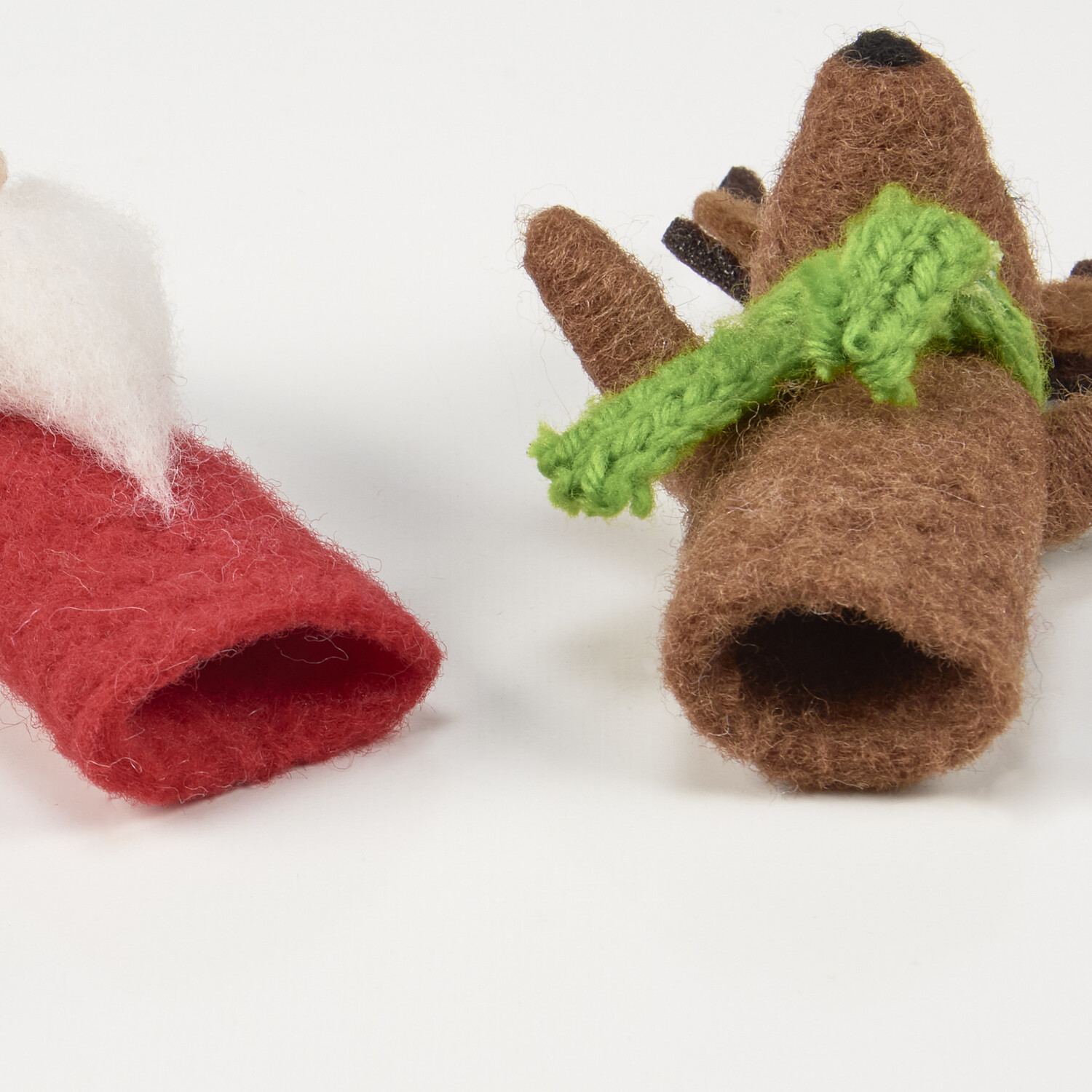 Featuring cute accents like knit scarves and hats, these finger puppets are perfect for gifting, entertaining kids, or adding a whimsical touch to your holiday decor.