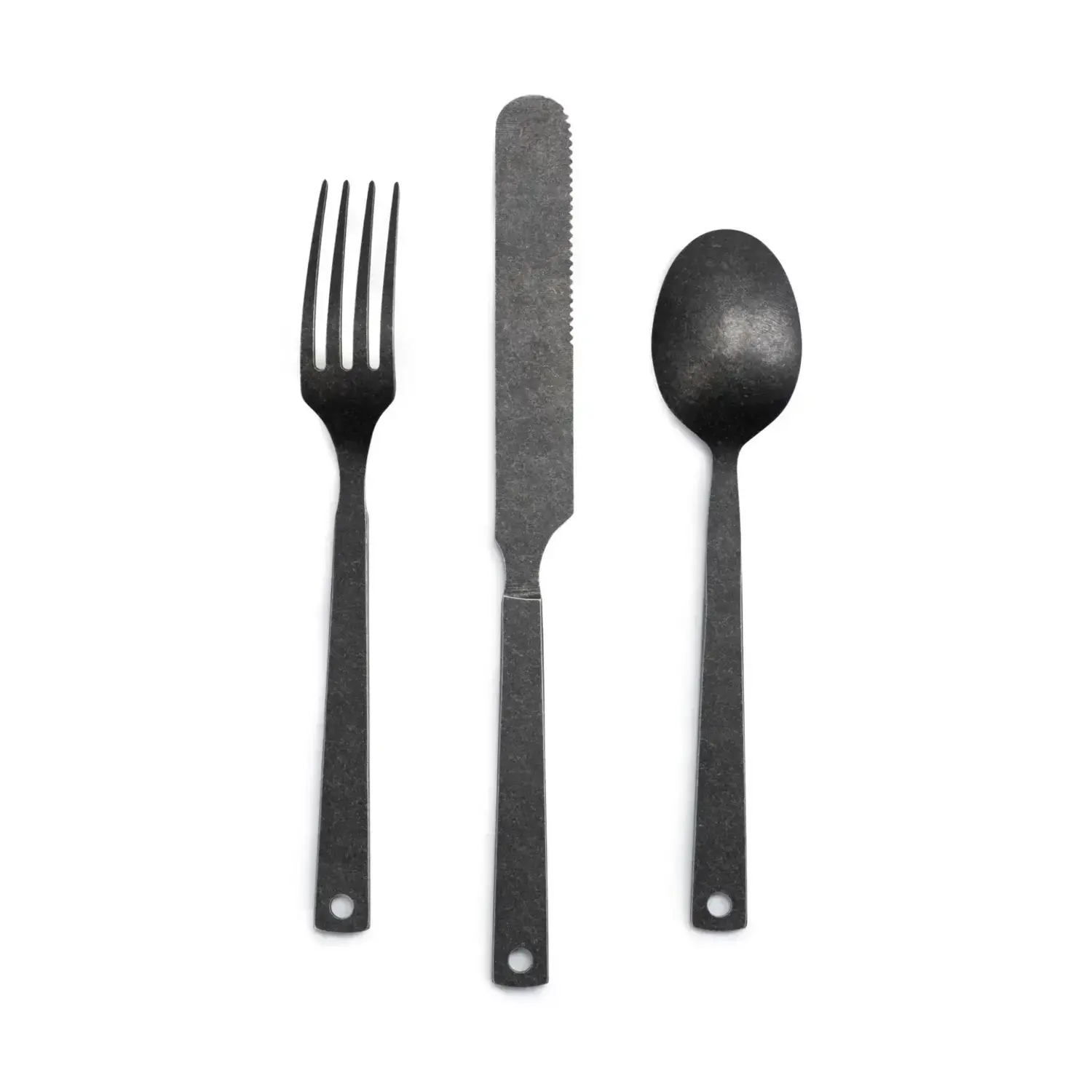 Sleek and contemporary, this one-of-a-kind Flatware set is versatile enough to use for car camping, rustic BBQs, or as additional utensils for fine dining at home.
