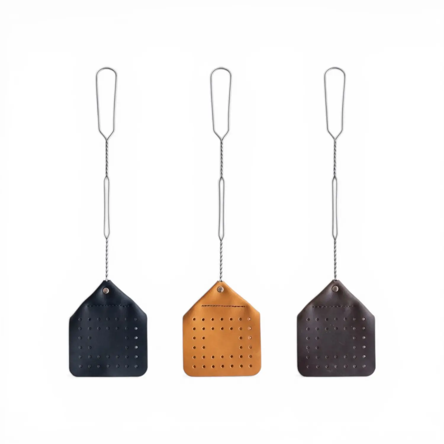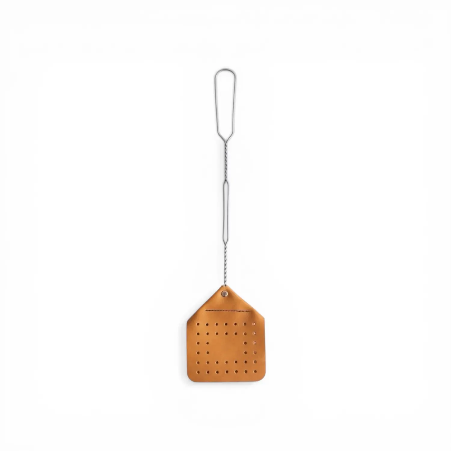 Amish handmade leather flyswatter is crafted in Lancaster County, Pennsylvania using full-grain leather and a solid steel handle, designed as a durable and thoughtfully made tool for everyday living.