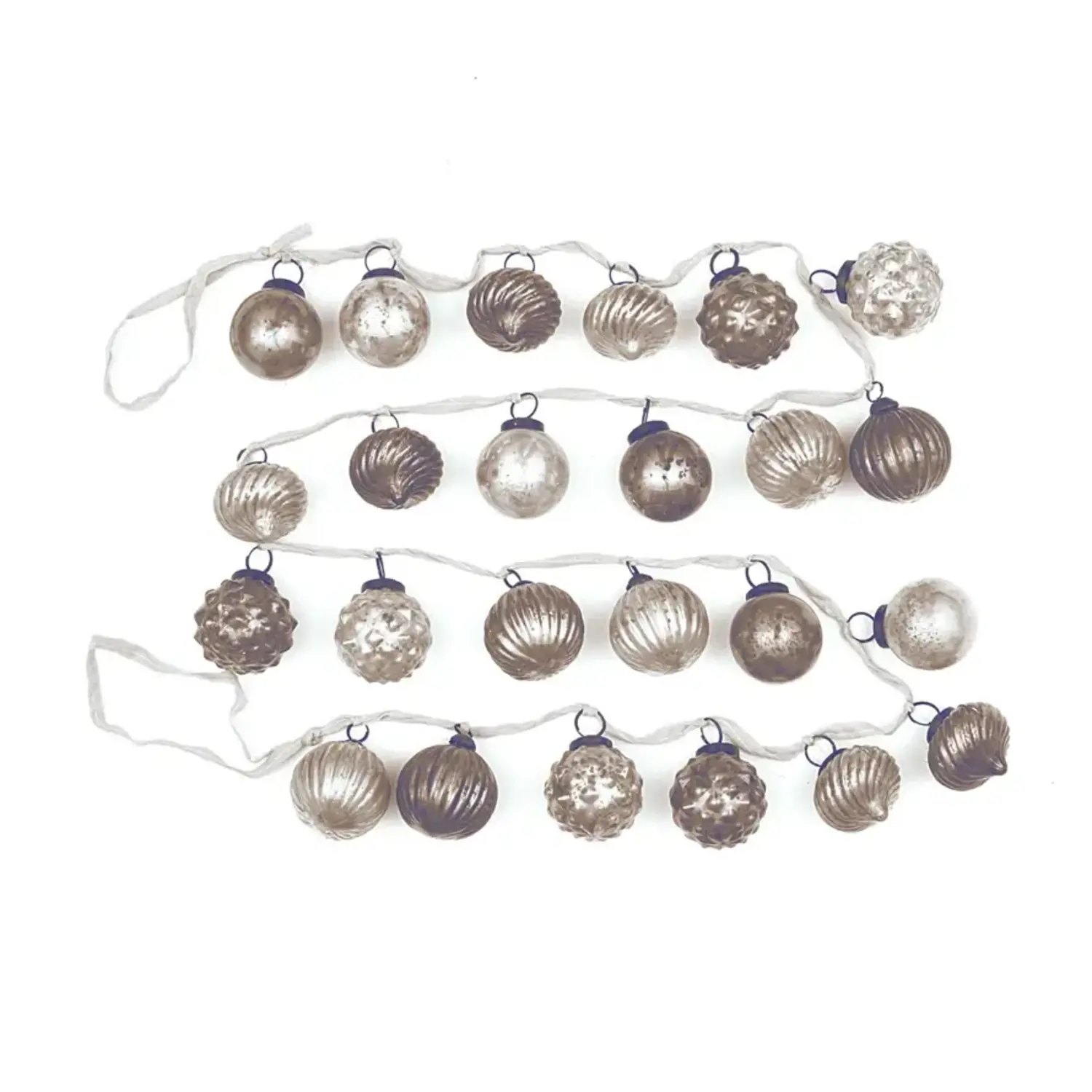 Garland | Mercury Glass Ornament | Silver/Gray + Fabric Ribbon